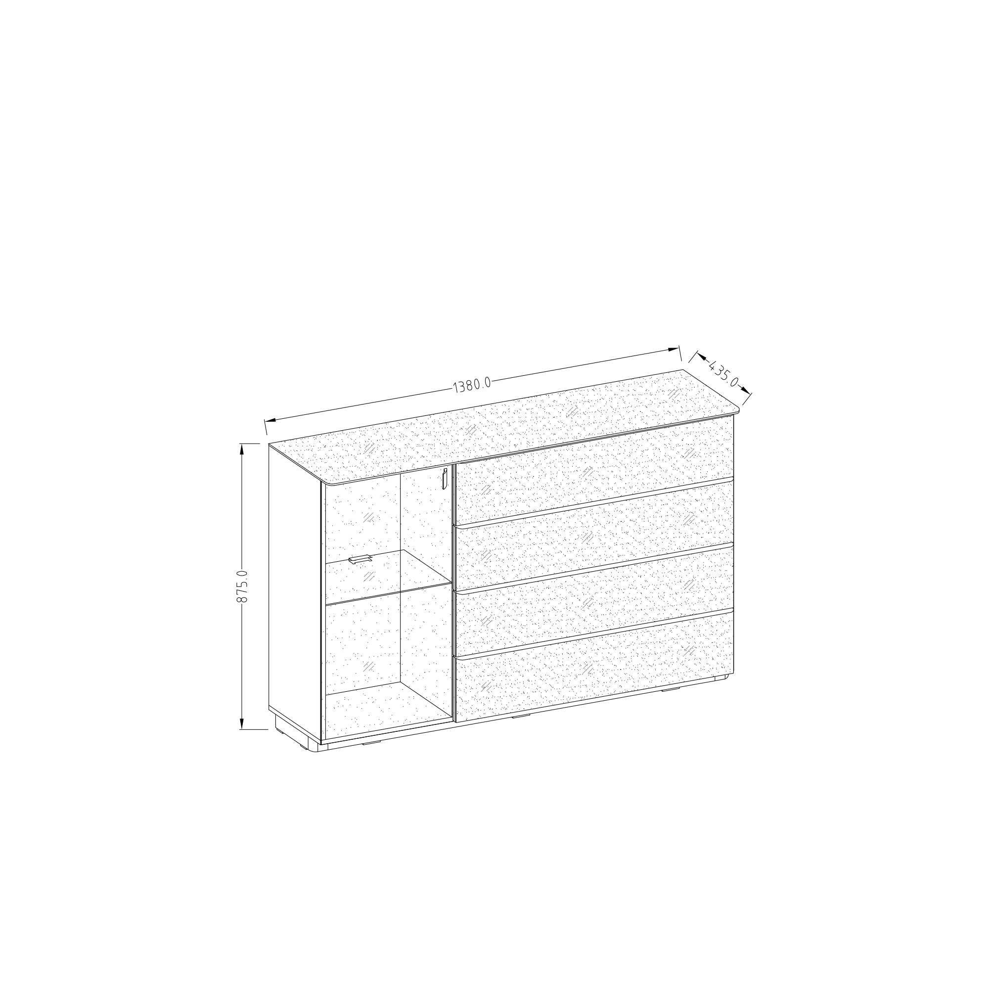 Niska komoda Togo z przeszkleniem pozwoli nie tylko na przechowywanie wielu przedmiotów, ale również wyeksponowanie tych, które są godne uwagi. Mebel posiada 4 szerokie szuflady i przeszklone drzwiczki, wewnątrz szklana półka z oświetleniem LED w komplecie. Mebel wykonany z laminowanej płyty meblowej w kolorze wenge, front i blat pokryte czarnym szkłem w wysokim połysku. Czarne matowe uchwyty podkreślają nowoczesny kształt bryły. System cichego zamykania drzwiczek i szuflad w standardzie.