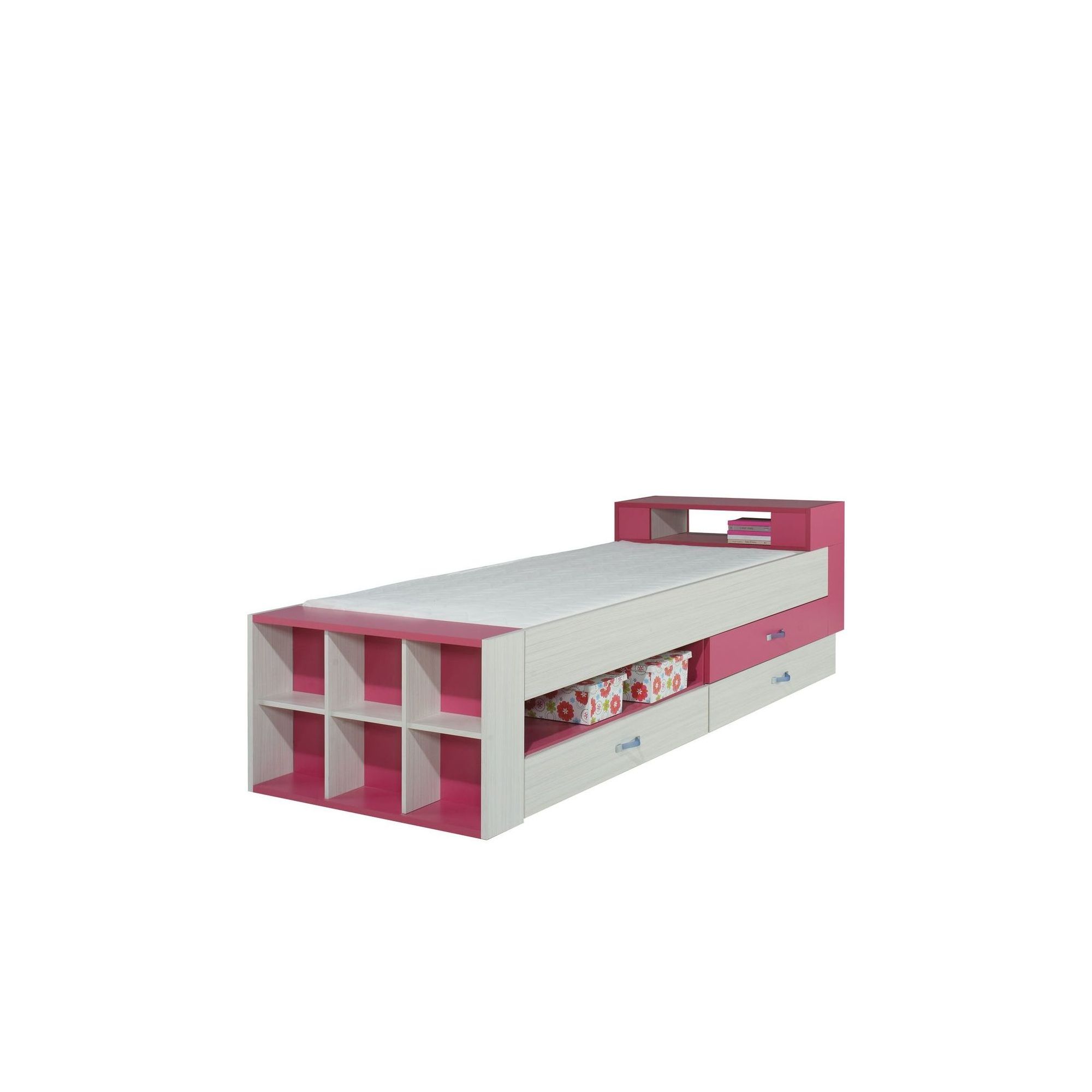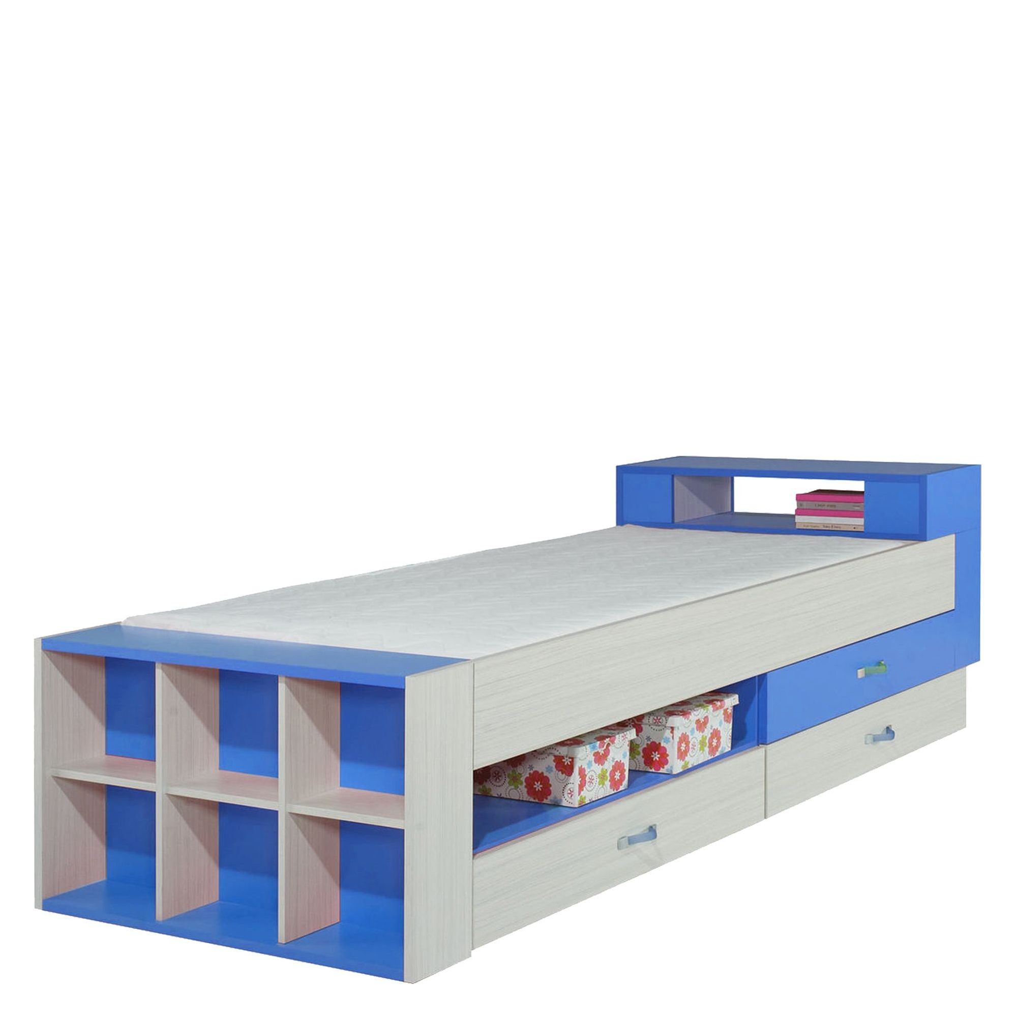 Designerskie łóżko z kolekcji Komi spodoba się każdemu dziecku, a rodzice zyskają nieodzowny, lecz ciekawy mebel do pokoju swojej pociechy. Oryginalny wygląd gwarantuje modne połączenie bazowego Jesionu Komi z wybraną opcją kolorystyczną, z którą stworzy wspaniały kontrast. Nowoczesna paleta barw doskonale współgra z prostymi kształtami mebla i transparentnymi uchwytami. W dolnej części łóżka znajdziesz dwie szuflady, które mogą pełnić funkcję pojemników na pościel. Natomiast zagospodarowane w oryginalny sposób zagłówek i zanóżek dostarczają dodatkowego miejsca na odłożenie zabawek, książek czy innych podręcznych drobiazgów. Warto również zwrócić uwagę na solidne wykonanie łóżka, przy użyciu wysokiej jakości materiałów oraz komponentów. Dzięki temu zyskujesz mebel nie tylko stabilny, ale i bezpieczny.