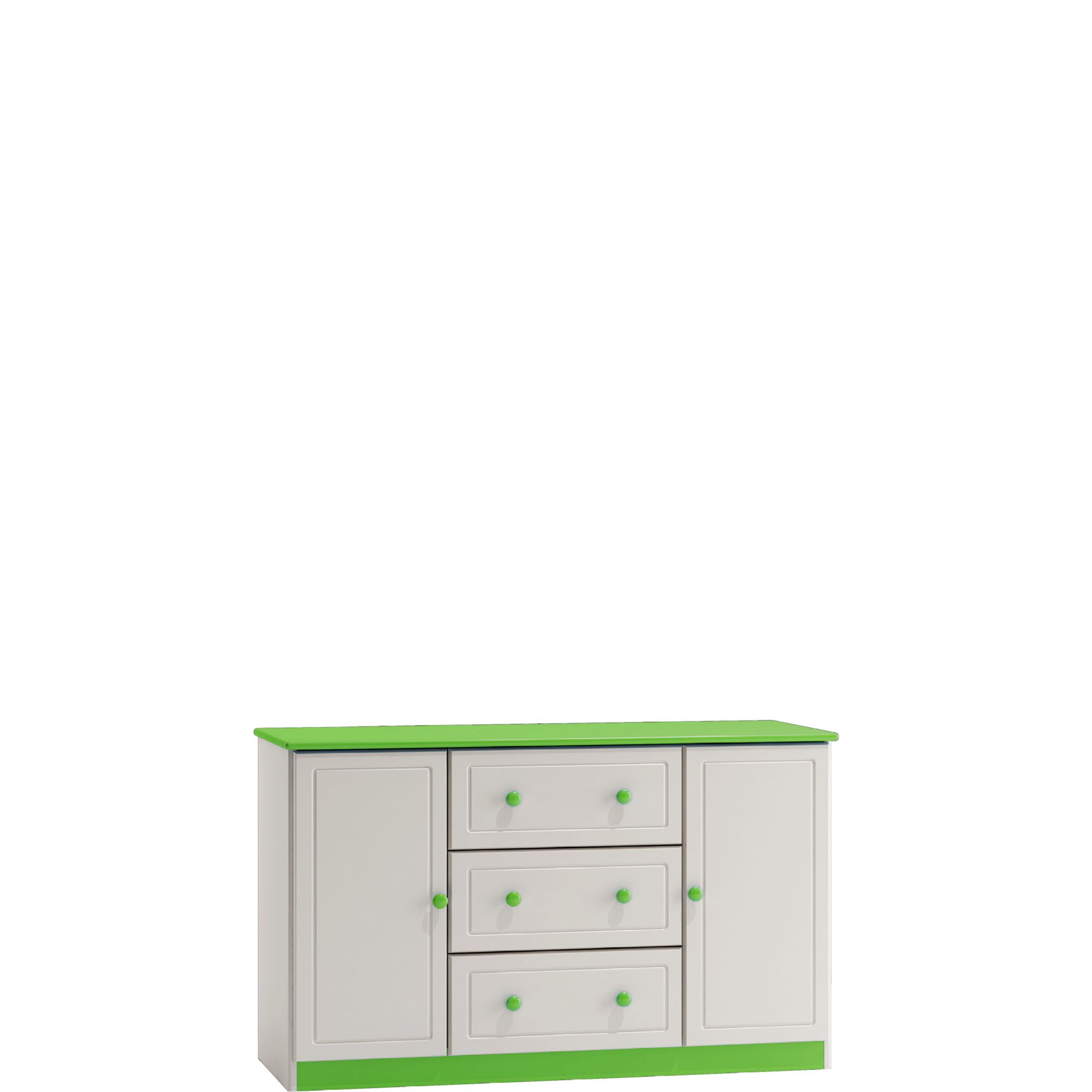 Oryginalna komoda z kolekcji Furniture Kids świetnie wpisze się w aranżację pokoju dziecięco-młodzieżowego. Trzy pojemne szuflady ułatwią uporządkowanie wielu potrzebnych przedmiotów. Dzięki temu utrzymanie porządku stanie się prostsze i mniej kłopotliwe. Dodatkowe miejsce znajdziesz na półkach umieszczonych za stylowymi drzwiczkami. W ciekawy sposób możesz wykorzystać również blat komody umieszczając na nim między innymi pamiątki, fotografie czy różnego rodzaju elementy ozdobne. W ten sposób stworzysz wyjątkowy design i nadasz wnętrzu stylowy charakter. Komoda została wykonana z wysokiej jakości drewna sosnowego, dlatego też mebel jest bardzo wytrzymały i będzie służył Ci wiele lat. Główne wybarwienie, jakim jest elegancka biel, uzupełnić możesz drugim, wybranym przez siebie kolorem. Całość prezentuje się bardzo korzystnie i tworzy przyjemny klimat.