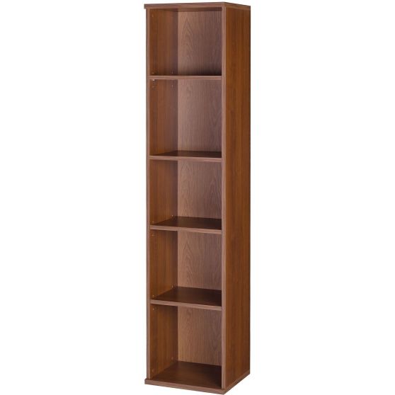 Otwarty regał z kolekcji Mag Euro to propozycja zarówno do wnętrz, gdzie masz dużo miejsca do zagospodarowania, jak i mniejszych pomieszczeń. Mebel został wykonany z odpornej na uszkodzenia laminowanej płyty meblowej w eleganckim orzechowym wybarwieniu, z wyraźnym naturalnym rysunkiem usłojenia drewna. Regał posiada 4 pojemne półki. Daje to wystarczająco dużo miejsca na uporządkowanie książek czy dokumentów.