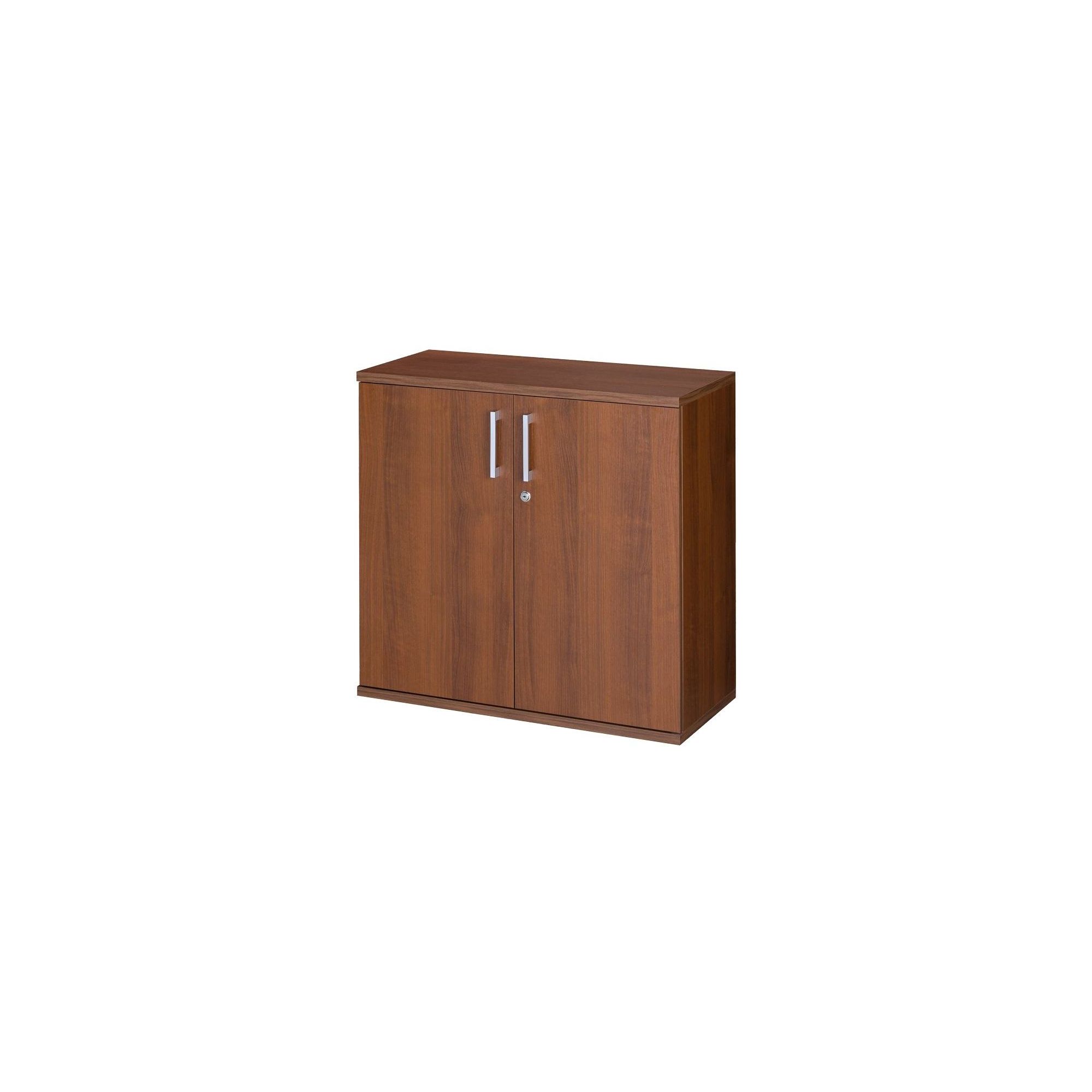 W biurze, czy też gabinecie liczą się pojemne meble do przechowywania. Dzięki nim w dokumentach zawsze panuje porządek, co usprawnia pracę. Dwudrzwiowa szafka z zamkiem z kolekcji Mag Euro sprawdzi się, jako mebel uzupełniający pozostałe moduły systemu. Jest niewielka, dlatego możesz wstawić ją również do niedużego pomieszczenia. Została wykonana z laminowanej płyty meblowej w eleganckim, lecz stylowym wybarwieniu orzecha. Wewnątrz mebla znajdziesz półkę.