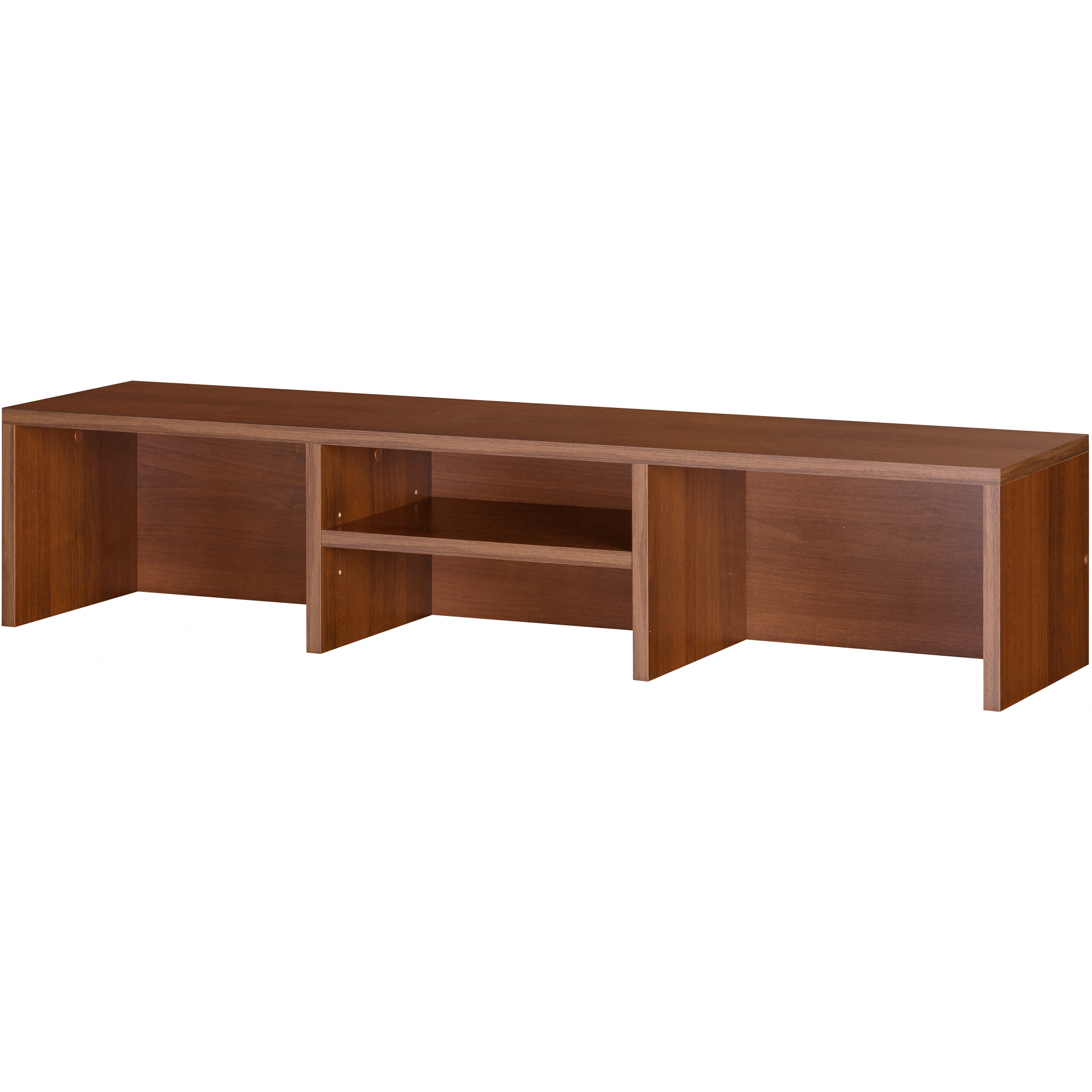 Aby Twoje miejsce pracy było dobrze zorganizowane i zawsze panował w nim porządek wyposaż swoje biurko w funkcjonalną nadstawkę. Element z kolekcji Mag Euro został wykonany z laminowanej płyty meblowej w kolorze orzecha. Posiada trzy wnęki – środkowa z półką. Na nadstawce zmieści się monitor, a jej wnętrze stworzy Ci dodatkowe miejsce do przechowywania.