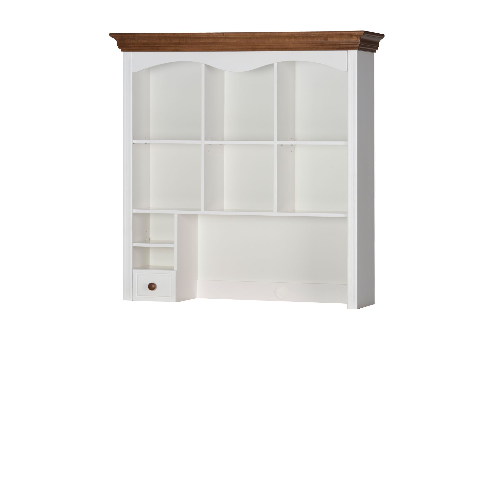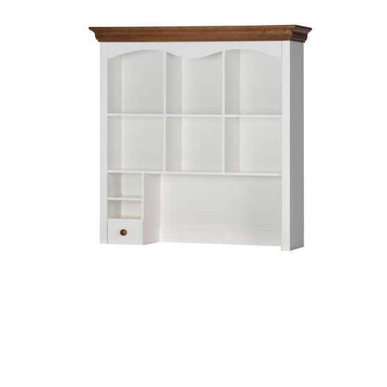 Aby zagwarantować dziecku odpowiednią przestrzeń do nauki oraz miejsce na przechowywanie drobiazgów wyposaż jego biurko w nadstawę z kolekcji Princessa. To praktyczny mebel zaprojektowany z myślą o potrzebach najmłodszych. Nadstawka posiada dużą wnękę z przegrodami tworzącymi półki, oraz jedną małą szufladę. Charakterystyczny dla całej kolekcji, ozdobny wieniec podkreśla wyjątkowy charakter mebla. Korpus nadstawki został wykonany z płyty meblowej w okleinie naturalnej, natomiast front szuflady z litego drewna brzozowego.