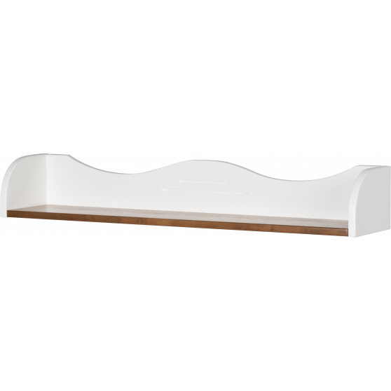 Półka to uniwersalny element wystroju wnętrza, który sprawdzi się w pomieszczeniach w każdym rozmiarze. Pomoże uporządkować książki lub wyeksponować bibeloty. Model z kolekcji Princessa została wykonana z płyty meblowej w okleinie naturalnej. Półkę poziomą połączono z bocznymi profilami i tylną ścianką z charakterystycznym dla całej kolekcji zdobieniem.