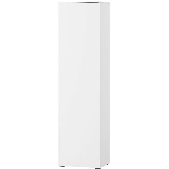 Wysoka, jednodrzwiowa szafa z kolekcji Loft została wykonana z laminowanej płyty meblowej w kolorze białym. Jej wnętrze możesz dopasować do swoich potrzeb wybierając wariant z półkami lub stałą półką konstrukcyjną i drążkiem. Wygodny system otwierania dotykowego push-to-open gwarantuje komfortowe i bezpieczne użytkowanie. Minimalistyczna stylistyka kolekcji Loft sprawdzi się zarówno w dużych, przestronnych wnętrzach, jak i niewielkich pomieszczeniach. Biała kolorystyka powiększy je optycznie i będzie doskonałą bazą dla wyrazistych dodatków.