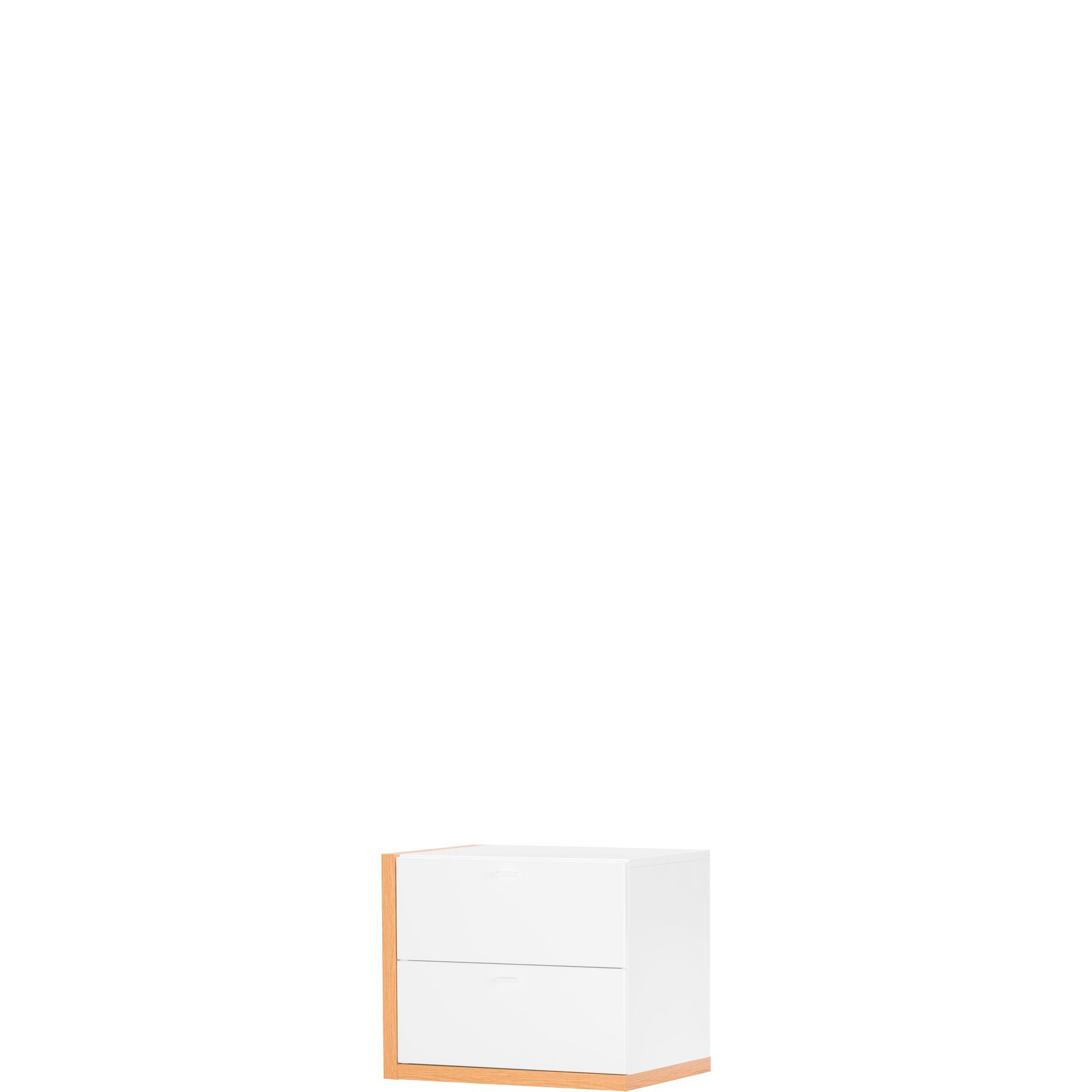 Niewielka szafka RTV to doskonała propozycja do stylowego, ale niedużego pomieszczenia. Jej minimalistyczny charakter podkreśla wyjątkowe wybarwienie będące połączeniem śnieżnej bieli w wysokim połysku z naturalnym dekorem orzecha europejskiego. Mebel posiada pogrubiony korpus z foliowanej płyty meblowej oraz front z solidnej płyty MDF oklejonej folią PCV. Dwie pojemne szuflady bez trudu pomieszczą wszelkie akcesoria RTV i inne drobiazgi. Szafka dostępna w wersji lewej i prawej.