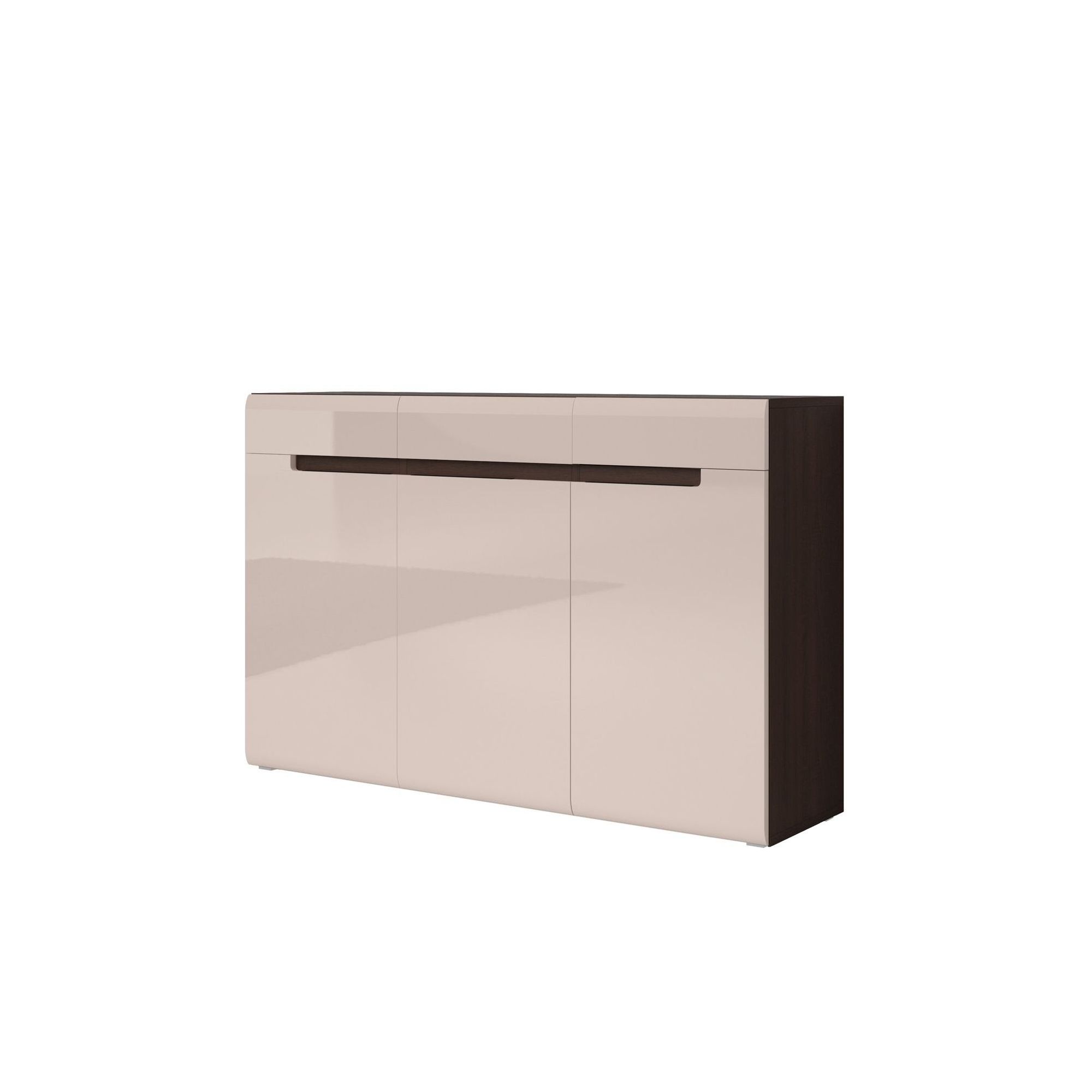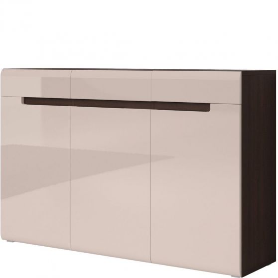 Komoda Hektor przyda się w sypialni jako dodatkowy mebel do przechowywania tekstyliów lub drobnych elementów garderoby. Laminowany korpus w naturalnym kolorze drewna dąb sonoma ciemny uzupełniono frontem w kolorze sand grey połysk (MDF oklejony nowoczesną, membranową folią). Komoda posiada 3 szuflady i 3 drzwiczek, wewnątrz 3 półki.