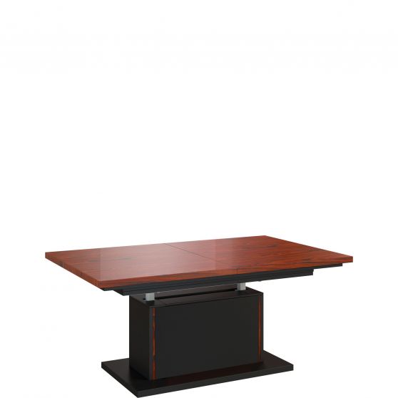 Urządzając pokój dzienny dbamy o to, by znalazły się w nim nie tylko wygodne meble tapicerowane, ale również funkcjonalny stolik okolicznościowy. Ławostół Elegante jest elegancki oraz niezwykle praktyczny. Na co dzień sprawdzi się jako miejsce na drobiazgi niezbędne podczas relaksu. Natomiast podczas wizyty gości możesz szybko dostosować jego wysokość oraz rozmiar blatu do swoich potrzeb. Blat mebla został osadzony na prostokątnej podstawie z kolumnową nogą w kolorze antracytu, z subtelnymi, podłużnymi wstawkami o wybarwieniu naturalnego drewna. Blat w okleinie naturalnej, dostępny w dwóch wyjątkowych opcjach kolorystycznych: palisandrze Rio oraz orzechu amerykańskim. Pneumatyczny podnośnik gwarantuje łatwość obsługi.