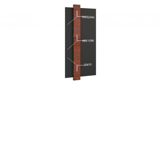 Równie ważne, jak funkcjonalne i stylowe meble, są we wnętrzu elementy dekoracyjne. Pionowy zegar z kolekcji Elegante będzie doskonałym uzupełnieniem Twojej aranżacji. Wykonany w okleinie naturalnej charakteryzuje się nowoczesnym designem i oryginalną konstrukcją. Zegar pokazuje aktualny czas na trzech kontynentach, dlatego też został wyposażony w trzy mechanizmy kwarcowe z gwarancją niezawodności. Cyferblaty zostały umieszczone na pionowym panelu w dwóch wariantach kolorystycznych: palisandrze Rio lub orzechu amerykańskim. Całość została zamocowana na prostokątnym elemencie w ciemnym wybarwieniu antracytu.