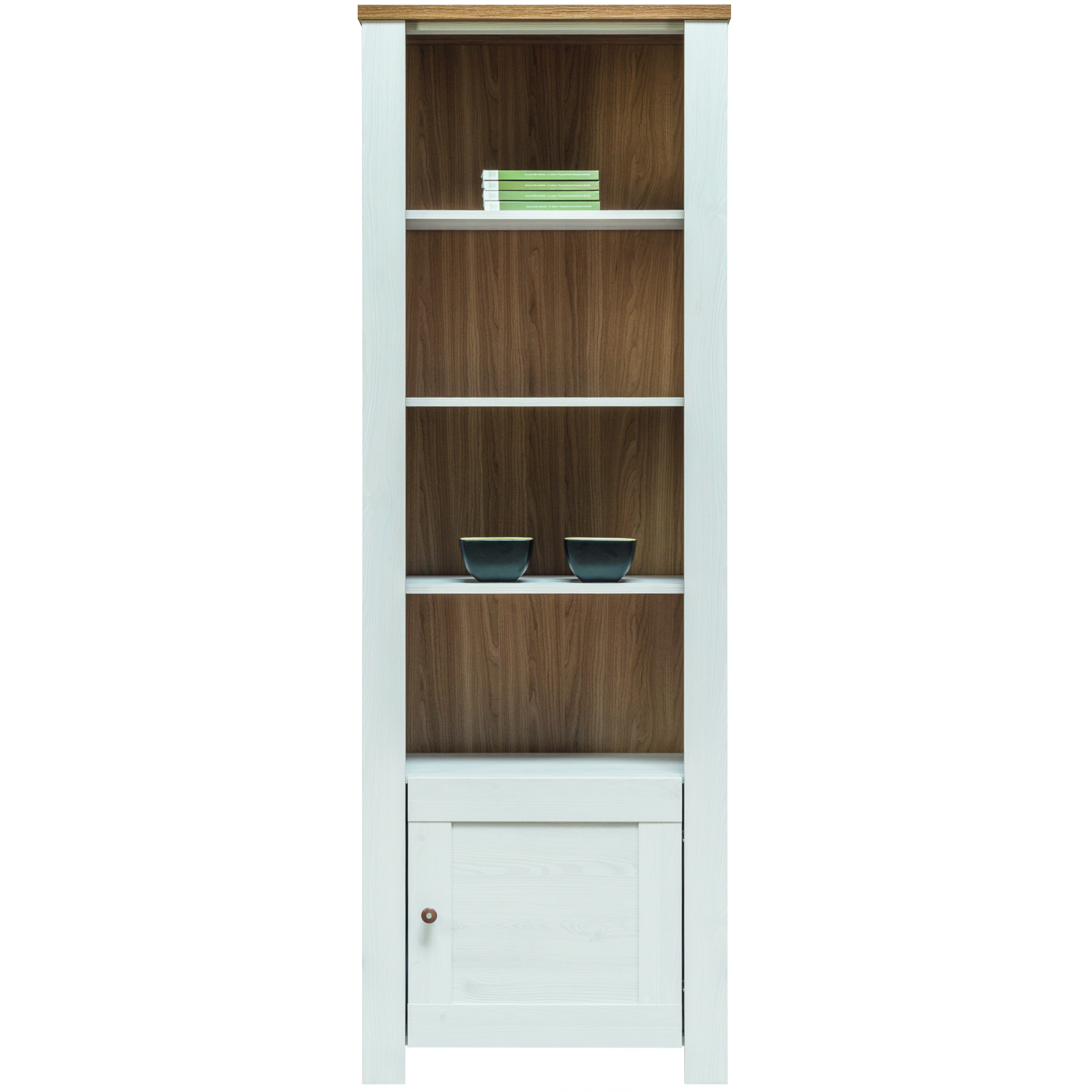 Regał to nieodłączny element wyposażenia każdego gabinetu czy biura. Ten z kolekcji mebli Deluxe sprawdzi się również w salonie lub pokoju młodzieżowym. Mebel posiada trzy półki oraz drzwiczki umieszczone w dolnej części. Jest pojemy, bez trudu pomieści książki, dokumenty czy też Twoje ulubione drobiazgi, które zechcesz na nim ustawić. Regał posiada możliwość wyboru strony otwierania dolnych drzwiczek.