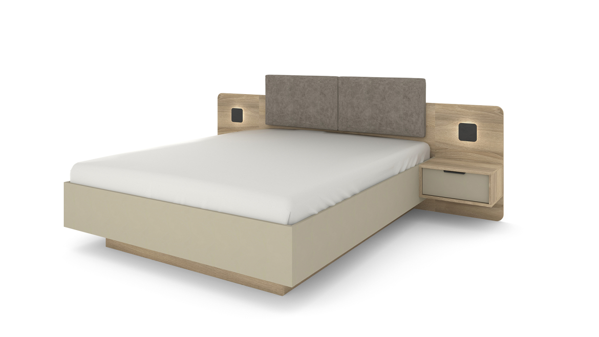 Łóżko 160 x 200 z pojemnikiem, szafkami nocnymi i oświetleniem
