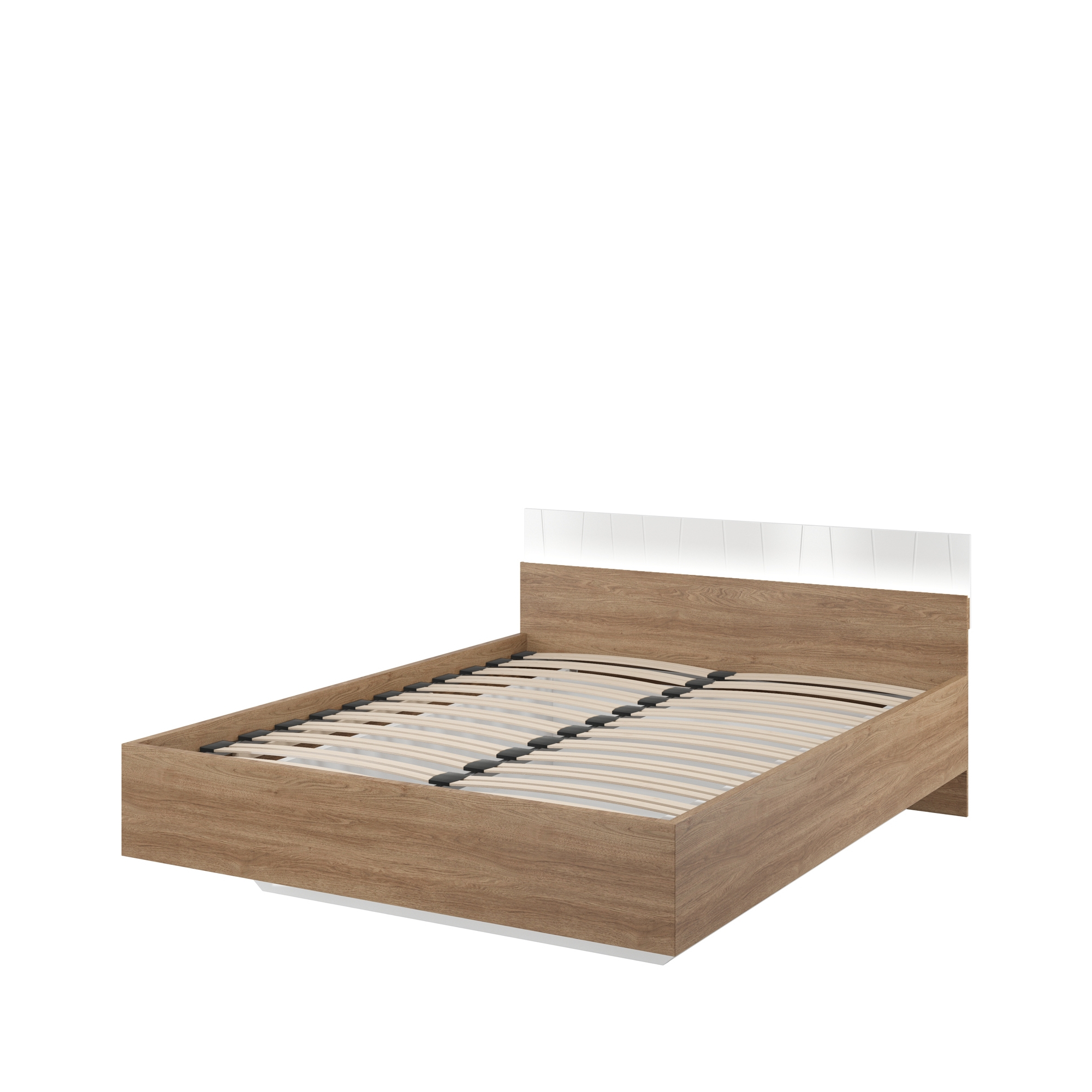Łóżko to bez wątpienia najważniejszy z mebli sypialnianych. Model z kolekcji Zefir przyciąga uwagę prostą konstrukcją i przyjemną kolorystyką. Jego dużym atutem jest również stelaż i pojemnik na pościel dostępne w standardowym wyposażeniu. Łóżko posiada boki i wysoki zagłówek w kolorze orzecha San Diego z poziomą wstawką w białym połysku. Podnoszony do góry ruszt jest bardzo prosty w obsłudze, a pojemnik przyda się do przechowywania pościeli i innych sypialnianych tekstyliów. Aby Twoja aranżacja była kompletna połącz łóżko z dedykowanymi kolekcji szafkami nocnymi.