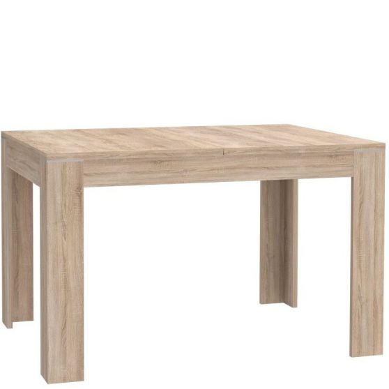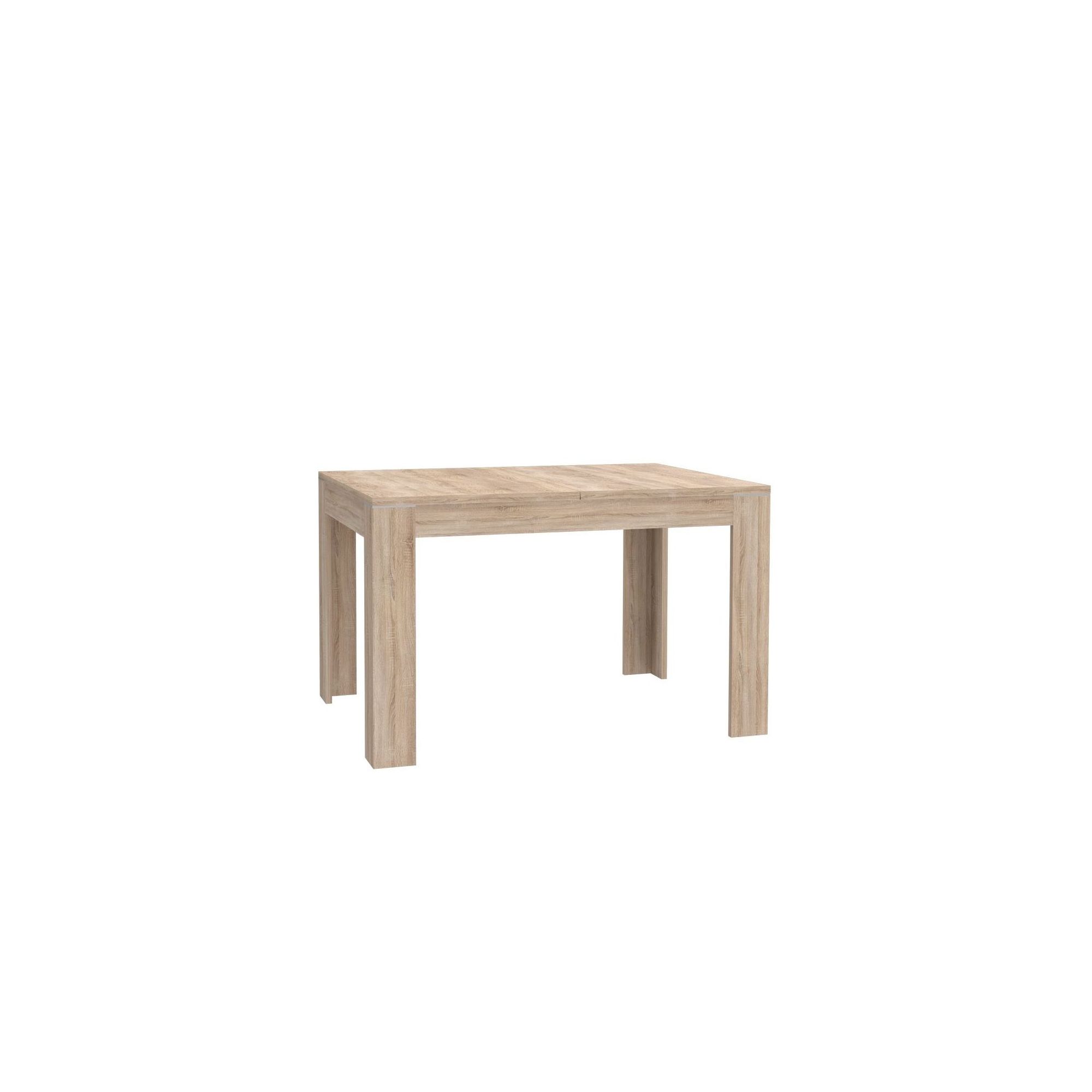 Prosty w formie stół z kolekcji Julietta to propozycja do nowocześnie zaaranżowanej jadalni. Z uwagi na wymiary stół świetnie sprawdzi się w niewielkim pomieszczeniu. Optycznie lekki blat spoczywa na masywnym stelażu, którego elementem dekoracyjnym są delikatne wstawki w kolorze aluminium. Modny dekor pozwala dopasować stół do innych mebli dostępnych w kolorze Dąb Sonoma, a dzięki funkcji rozsuwania blatu szybko i łatwo dopasujesz jego rozmiar do aktualnych potrzeb.