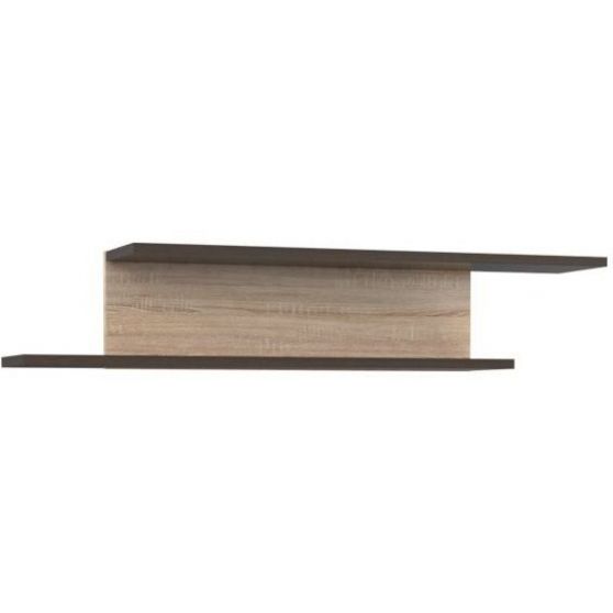 Dwupoziomowa półka z kolekcji Combino to mebel uzupełniający, który wykorzystasz w wielu wnętrzach. W salonie przyda się do ustawienia książek, w jadalni wyeksponujesz na niej rośliny lub dekoracje, a w przedpokoju posłuży do przechowania drobnych elementów garderoby. Mebel składa się z tylnej ścianki i dwóch półek poziomych - górnej i dolnej. Całość wykonana w połączeniu przyjemnego Dębu Sonoma z ciemnym Wenghe.