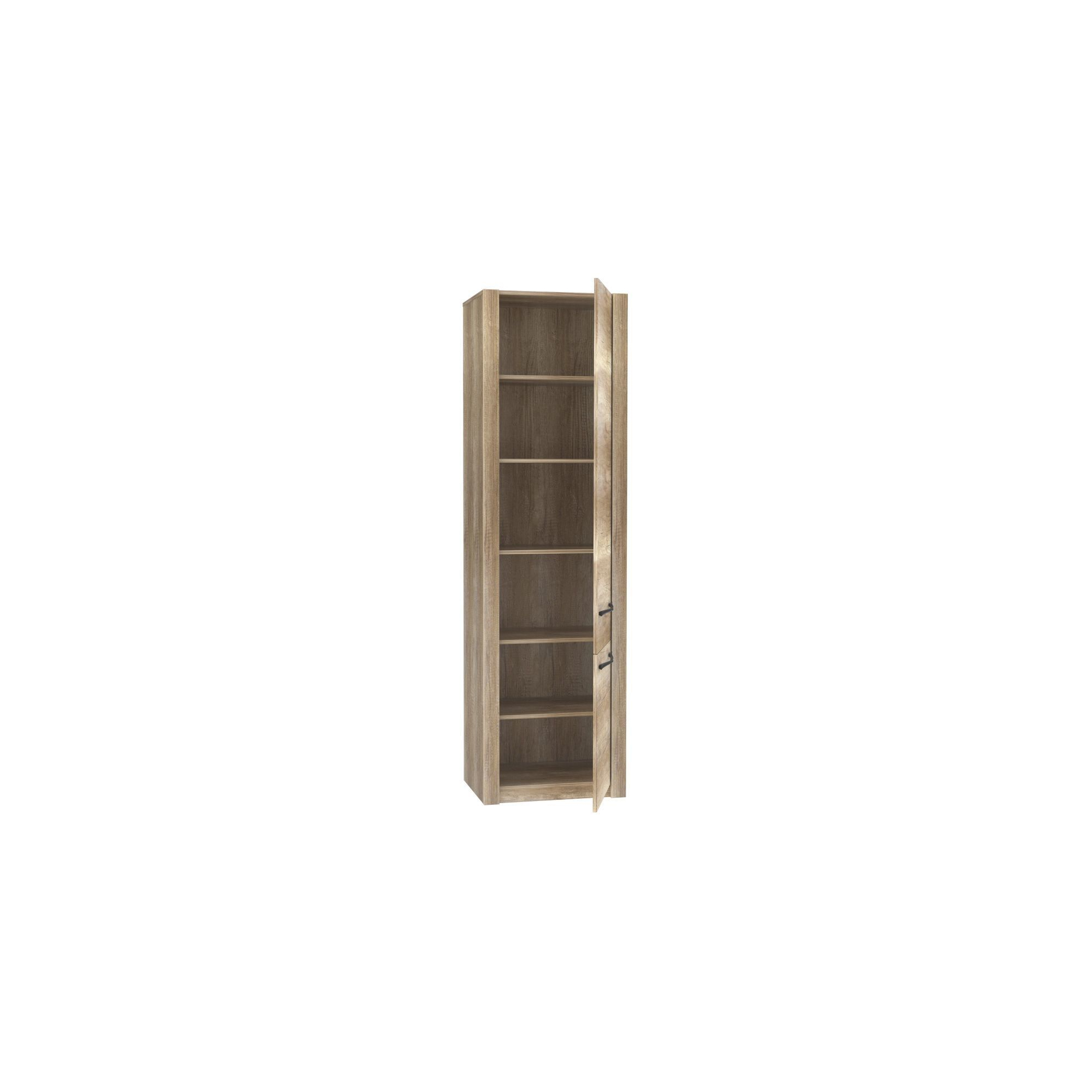 Wysoka bieliźniarka Maximus pozwoli na funkcjonalne zaaranżowanie przestrzeni w salonie lub przedpokoju. Mebel został wykonany w przyjemnym dekorze Dąb Antyczny co, w połączeniu z masywną konstrukcją, nawiązuje do stylu rustykalnego. Szafa posiada podwójne drzwi - wysokie górne i niskie dolne, wyposażone w profilowane, czarne uchwyty. Wewnątrz znajdziesz pojemne półki.