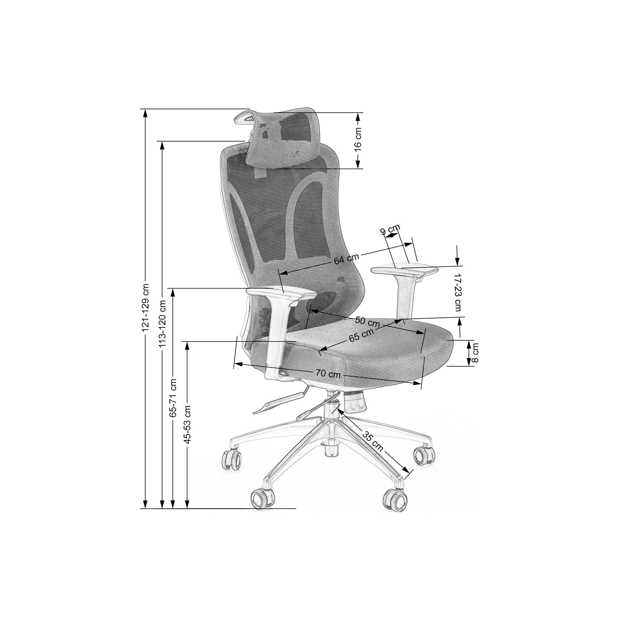 Wysokość oparcia 58