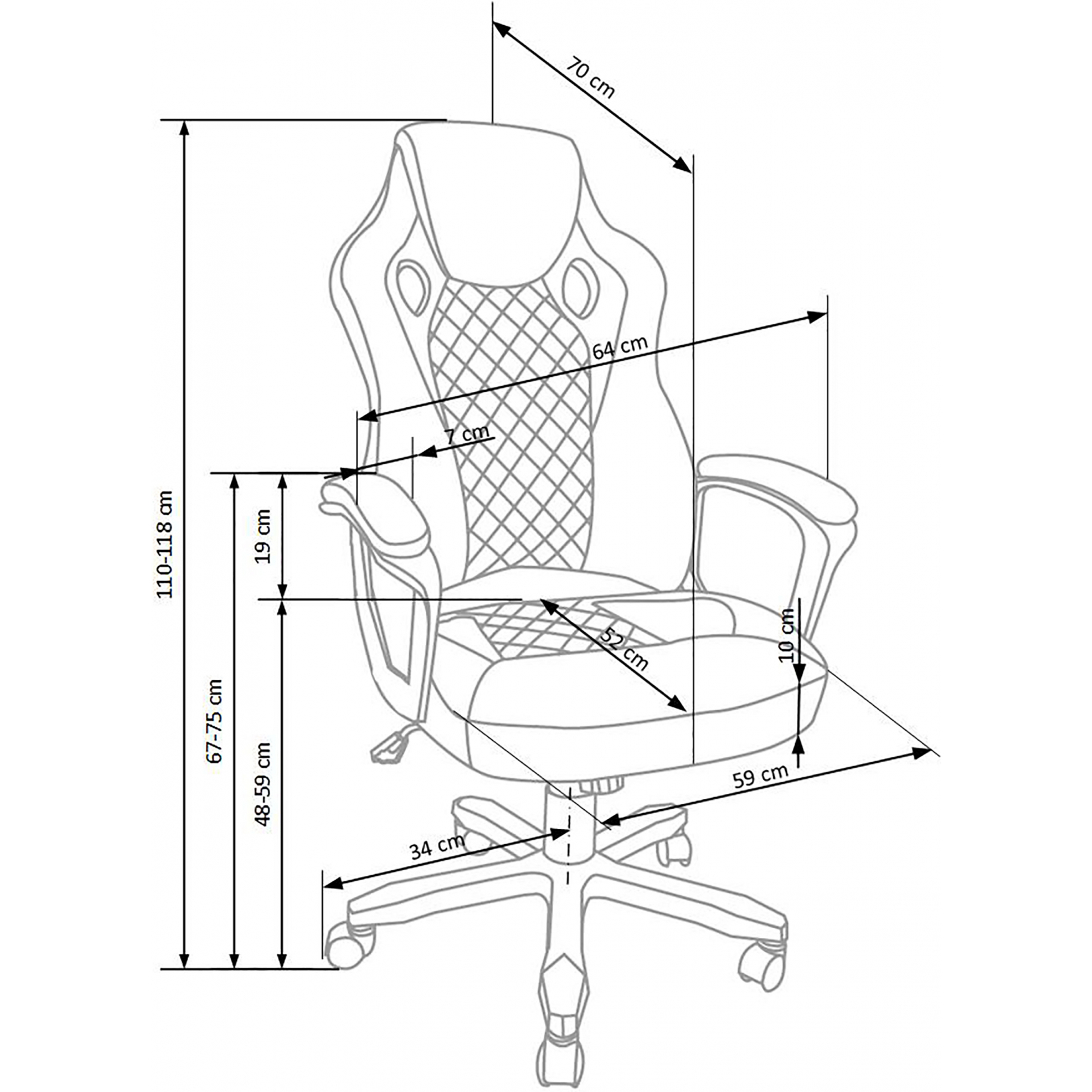 Wysokość oparcia 59