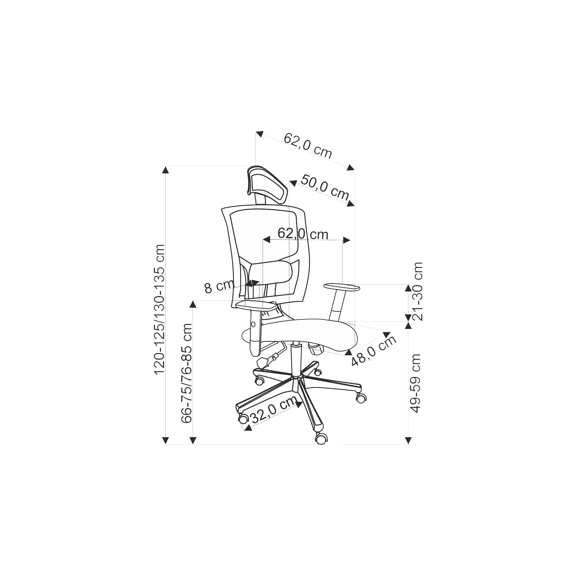 Wysokość oparcia 76