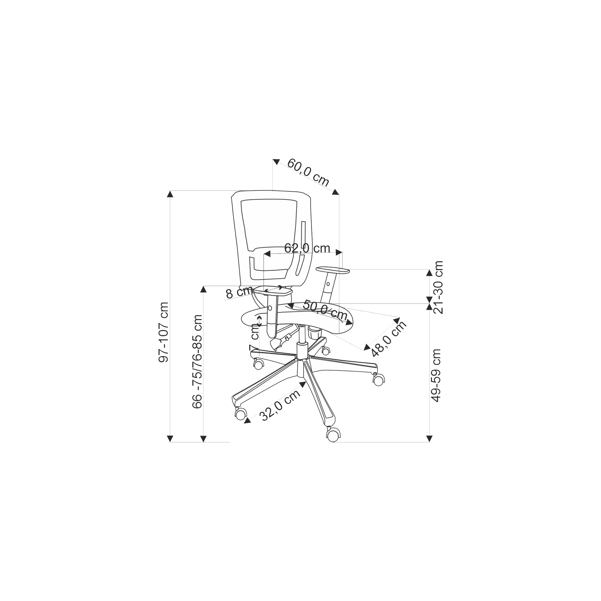 Wysokość siedziska 49÷59