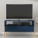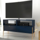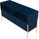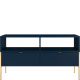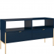 To elegancka i praktyczna szafka pod telewizor. Intensywny granatowy kolor doskonale harmonizuje z metalowymi nóżkami i uchwytami w kolorze złota, jest na tyle duża, że bez problemu zmieści się na niej sporych rozmiarów telewizor.