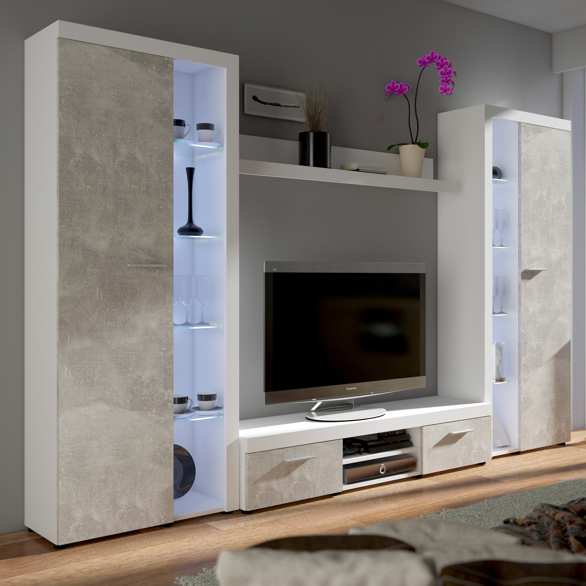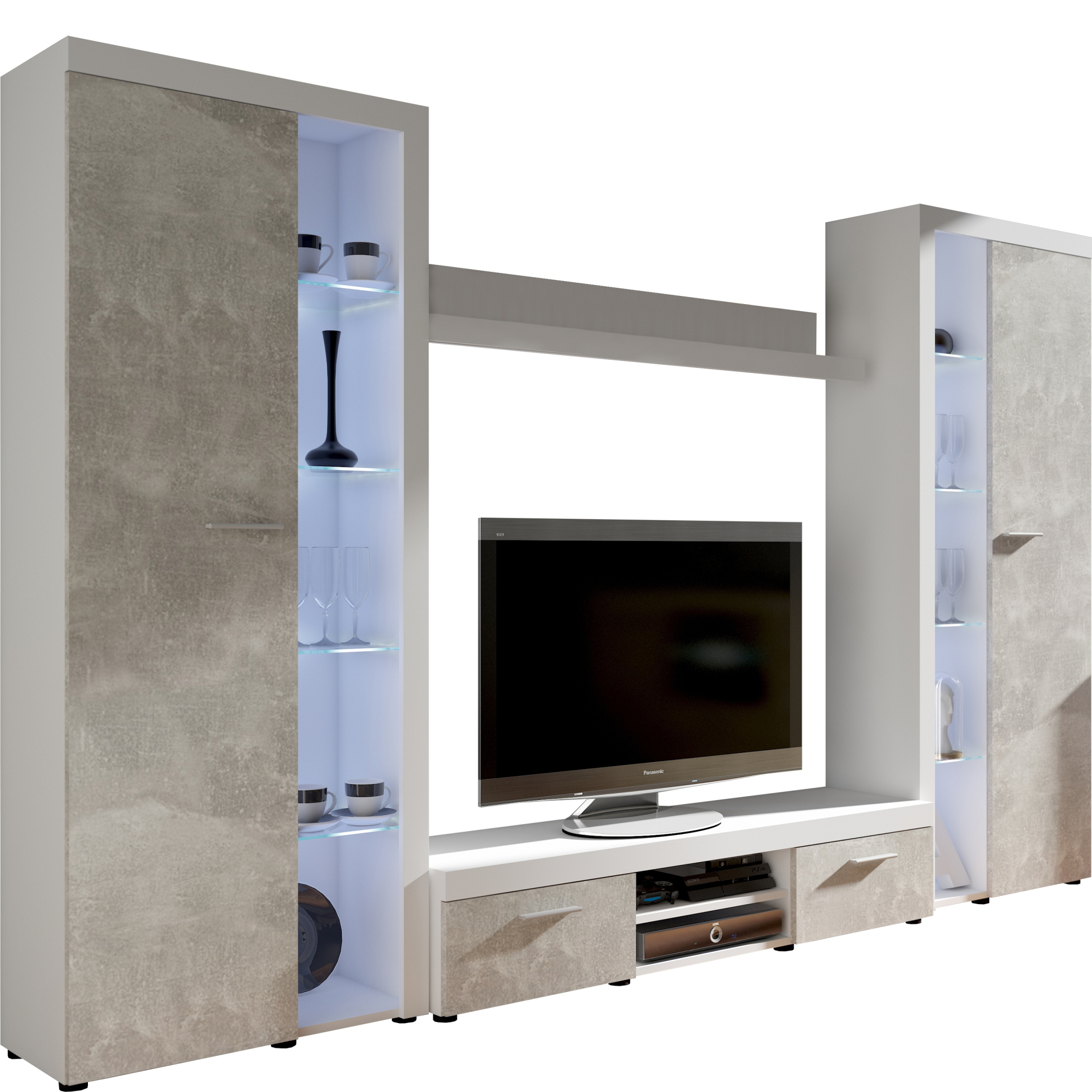 Zestaw mebli do salonu BJ01 Beton Jasny / Biały RUMBA XL Podstawowe
