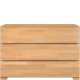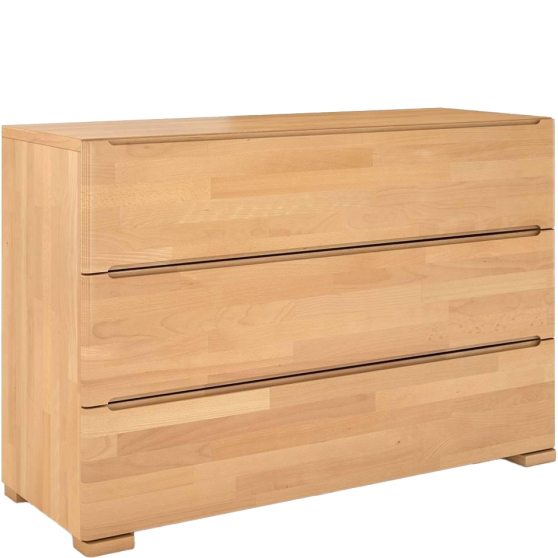 konfigurowalny Niezwykle solidna komoda szufladami z litego drewna na mocnych nogach, które dbają o jej stabilność. Trzy pojemne szuflady pozwolą przechować wiele przedmiotów, a brak uchwytów, które zastąpiono wcięciami we frontach szuflad nadaje jej nowoczesnego, minimalistycznego charakteru.