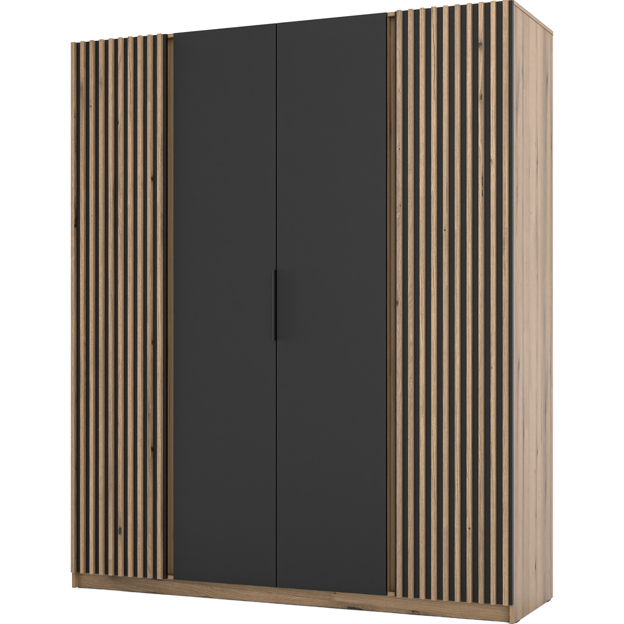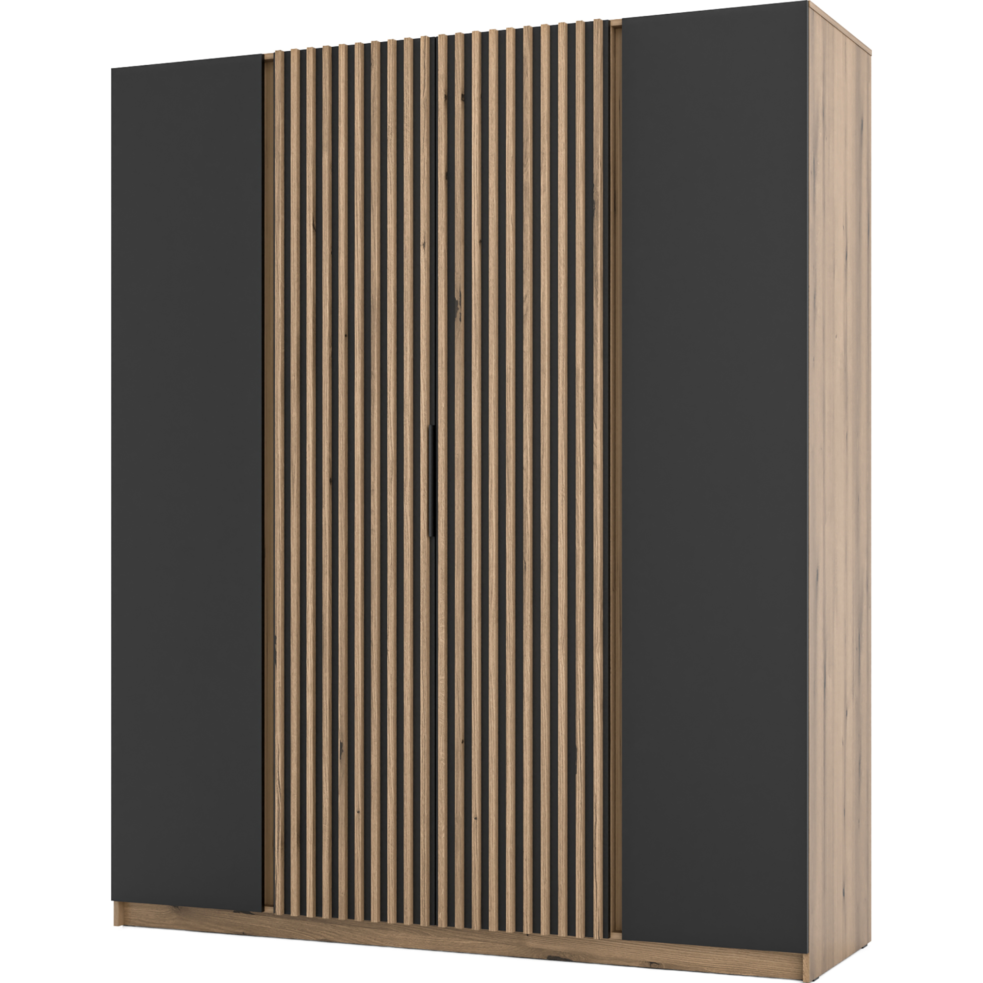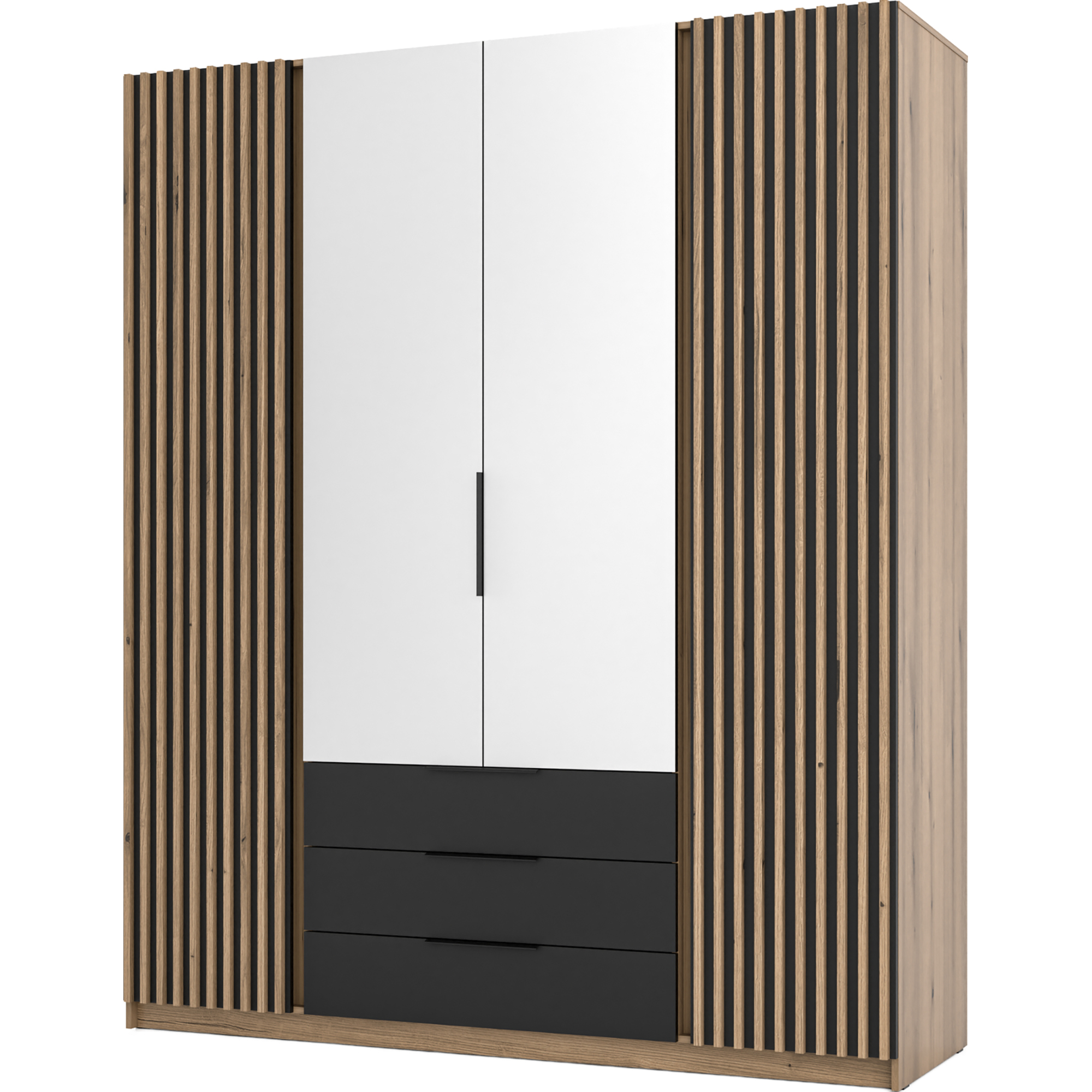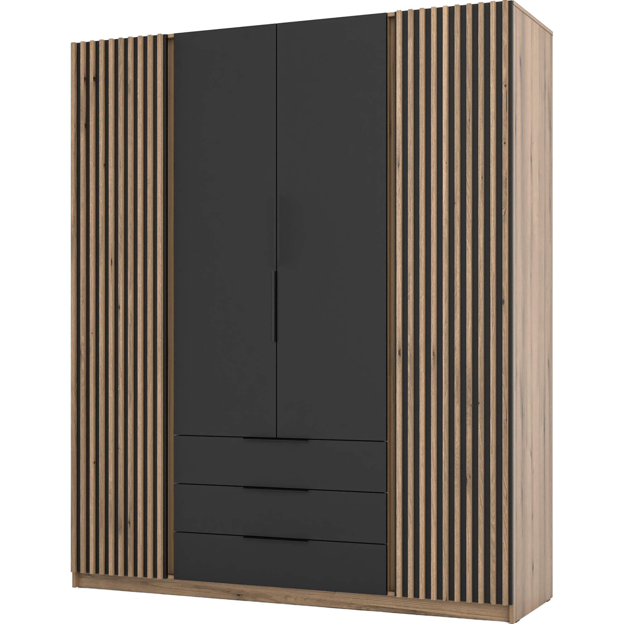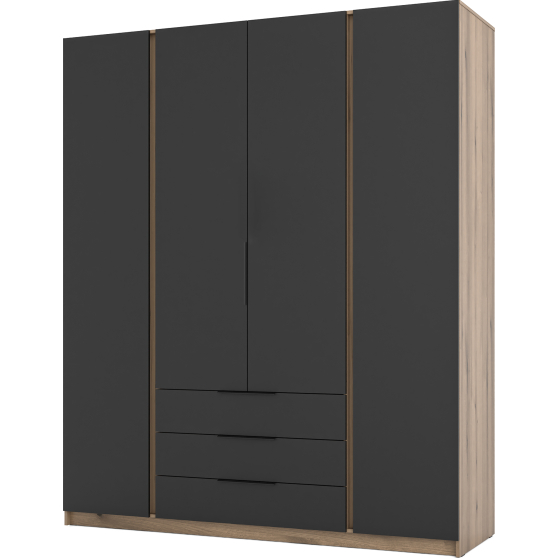 Szafa czterodrzwiowa z szufladami Czarny / Dąb Evoke KAJA Podstawowe