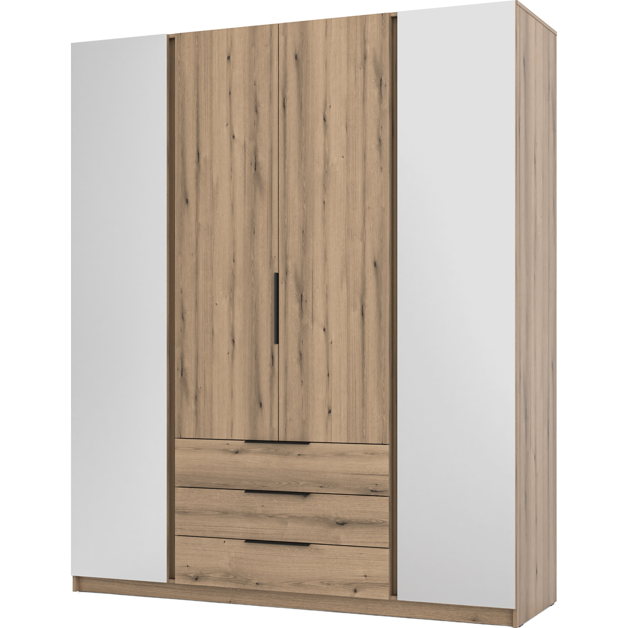 Szafa czterodrzwiowa z szufladami Czarny / Dąb Evoke