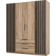 Szafa czterodrzwiowa 2 fronty z lamelami 3S Dąb Evoke / Dąb Evoke / Czarny