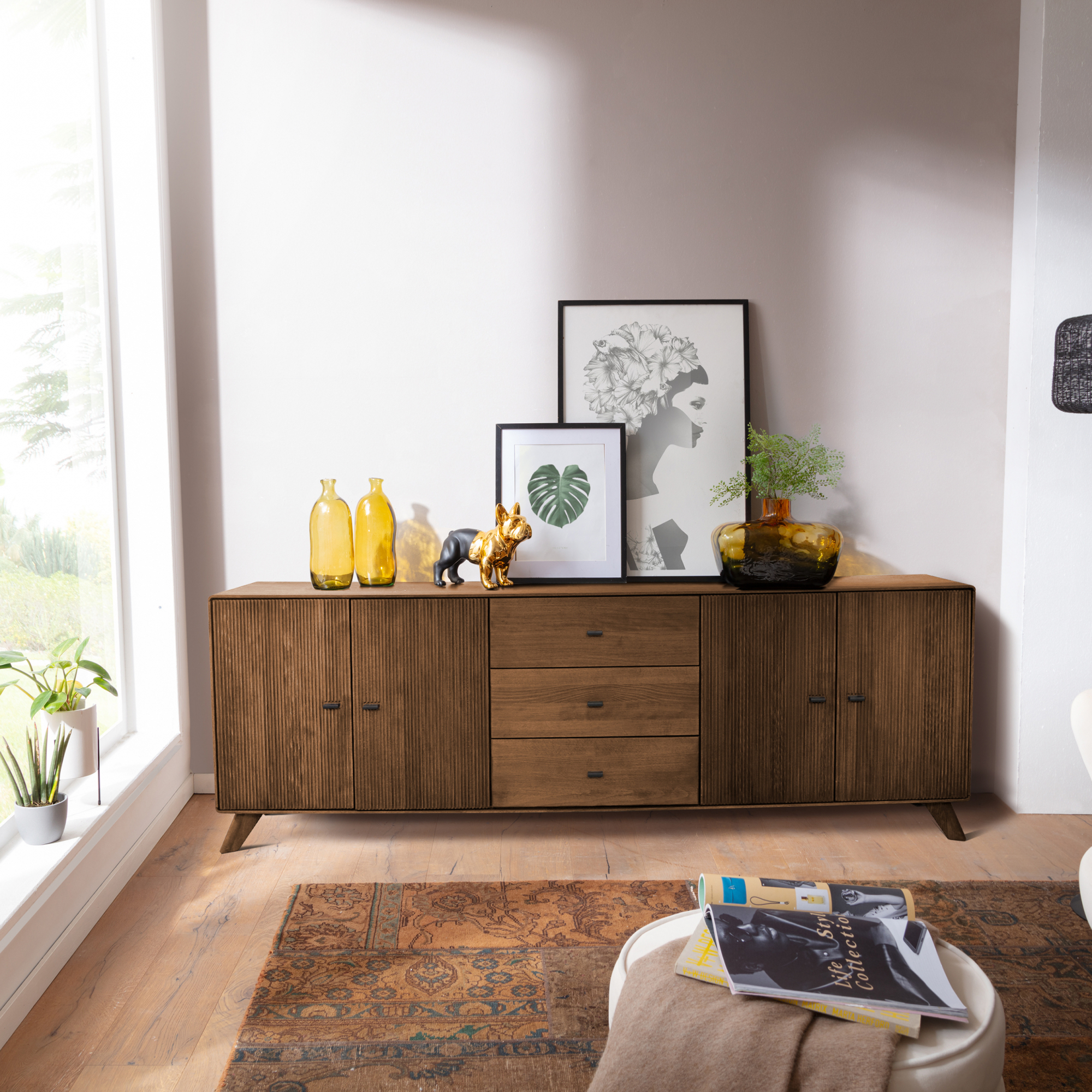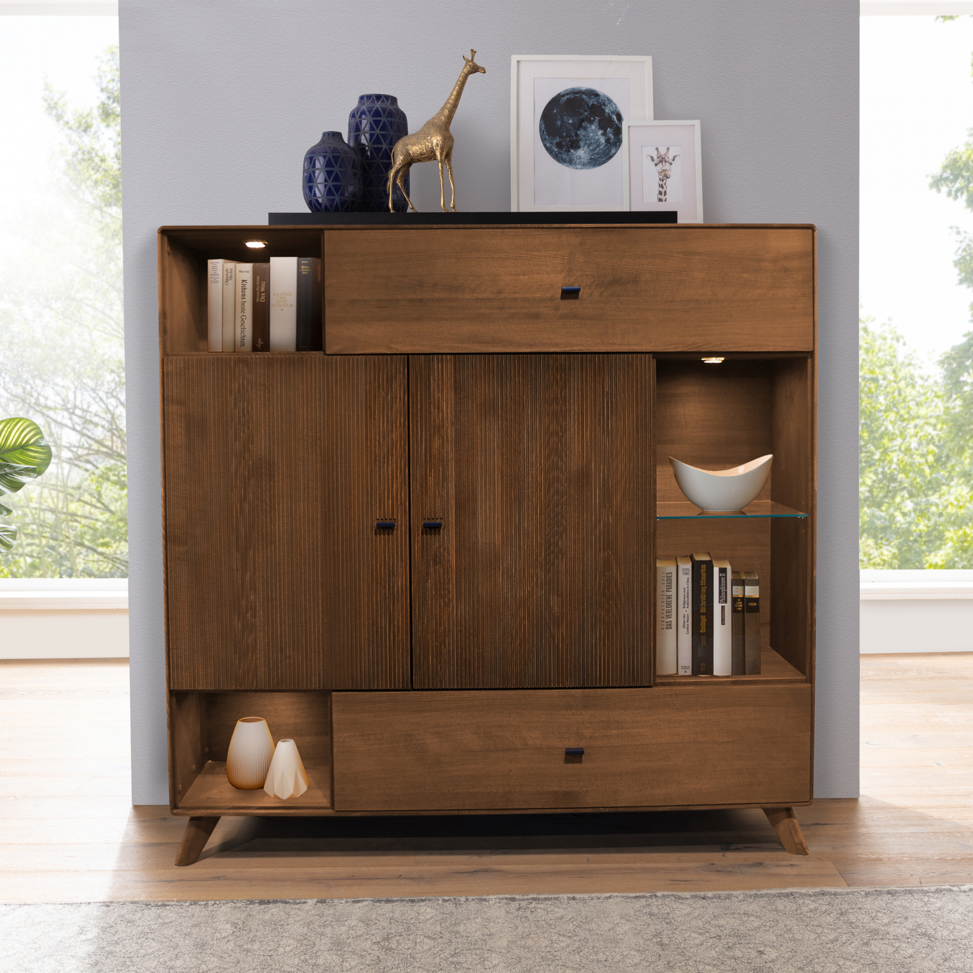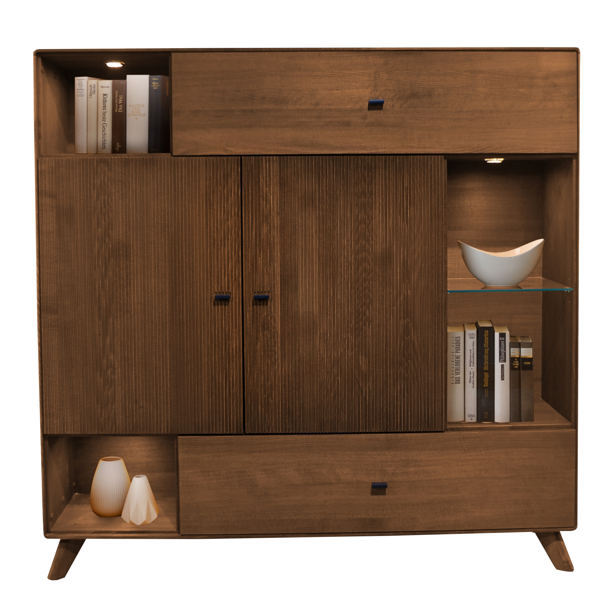 Komoda II WZ-0624-06 wykonano z drewna bukowego. Mebel składający się z szuflad, półek oraz szafek. Większy niż standardowa komoda, z bogatszym systemem do przechowywania oraz eksponowania rzeczy. Wzornictwo, forma, barwa komody dedykowana do designerskiego, nowoczesnego wnętrza.