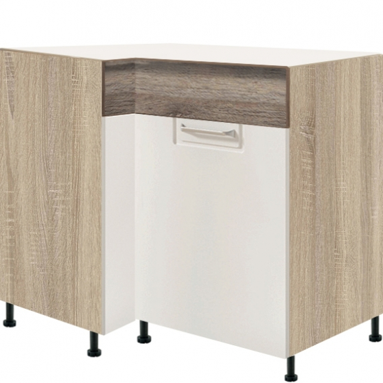 W szafkach narożnych, aby obliczyć potrzebne miejsce (wymiary blatu), najlepiej sprawdzać wymiary na załączonych rysunkach technicznych.