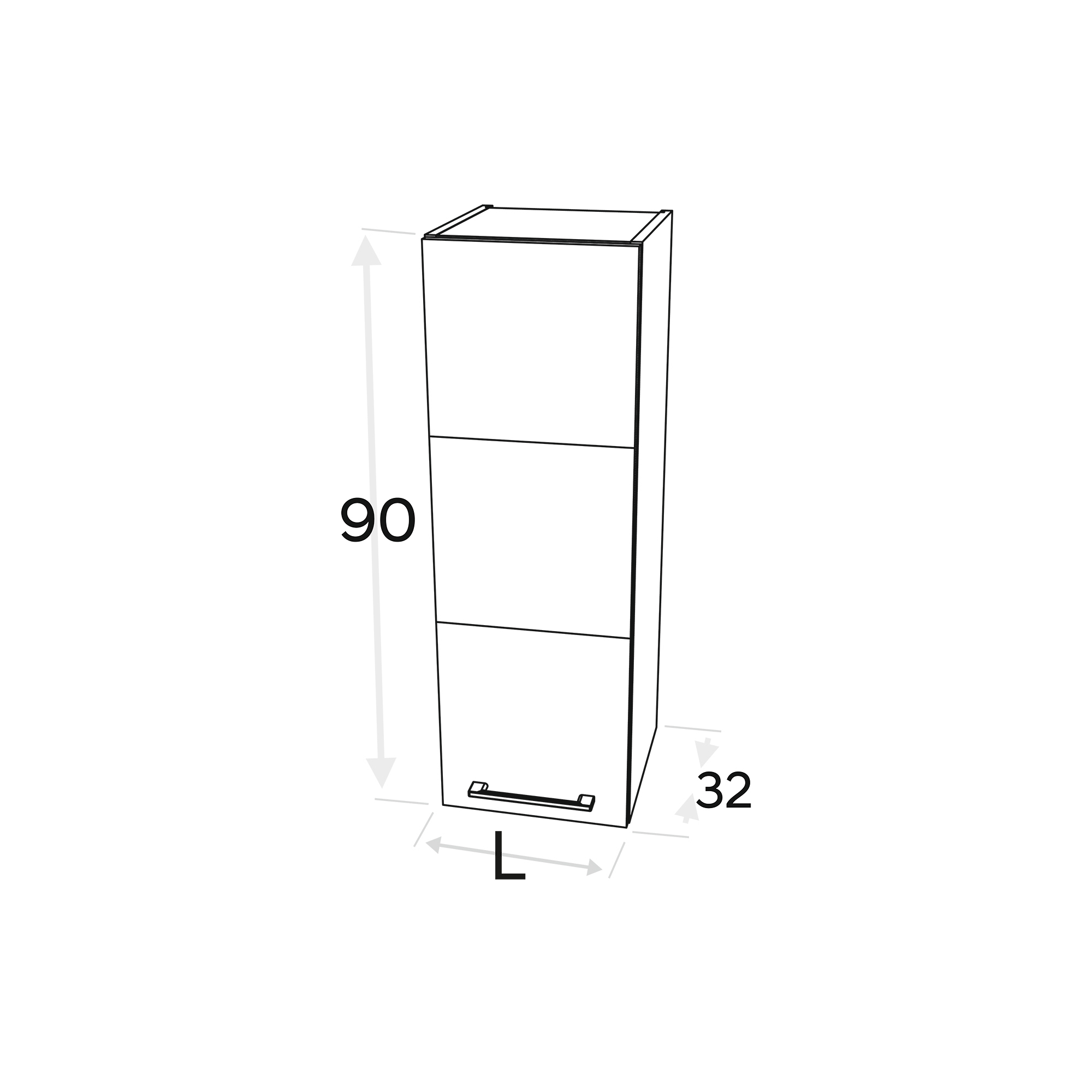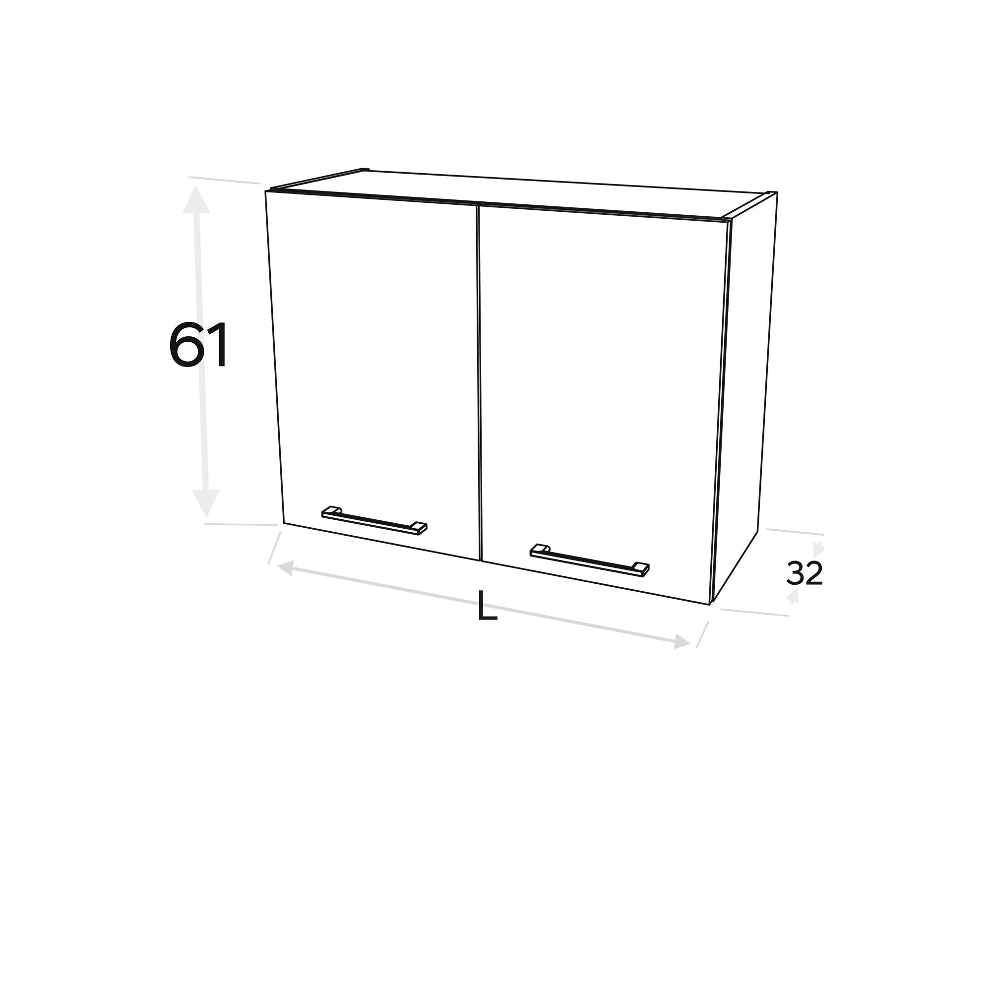 Szafka górna wisząca 1 drzwi witryna Prawa WW… .1/61 KAMMONO F7 Szkic