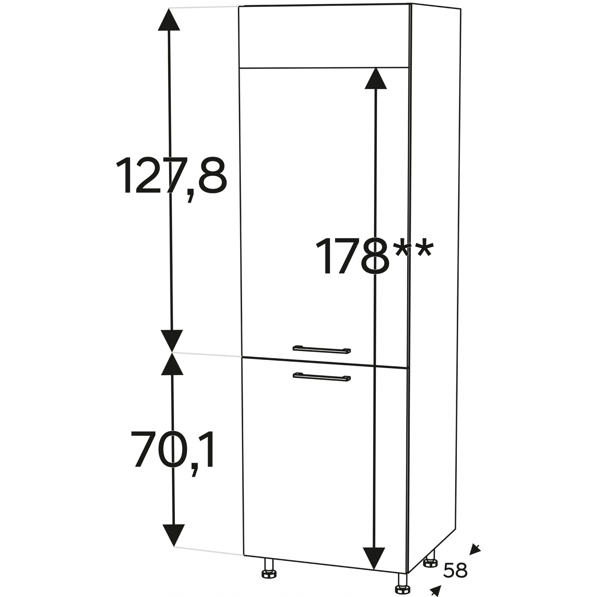 Słupek pod zabudowę piekarnika i mikrofali sprzedawany jest w paczkach do samodzielnego montażu. Posiada regulowane nóżki o wysokości 10 lub 15 cm. Do zakrycia nóżek można dokupić cokół PCV.