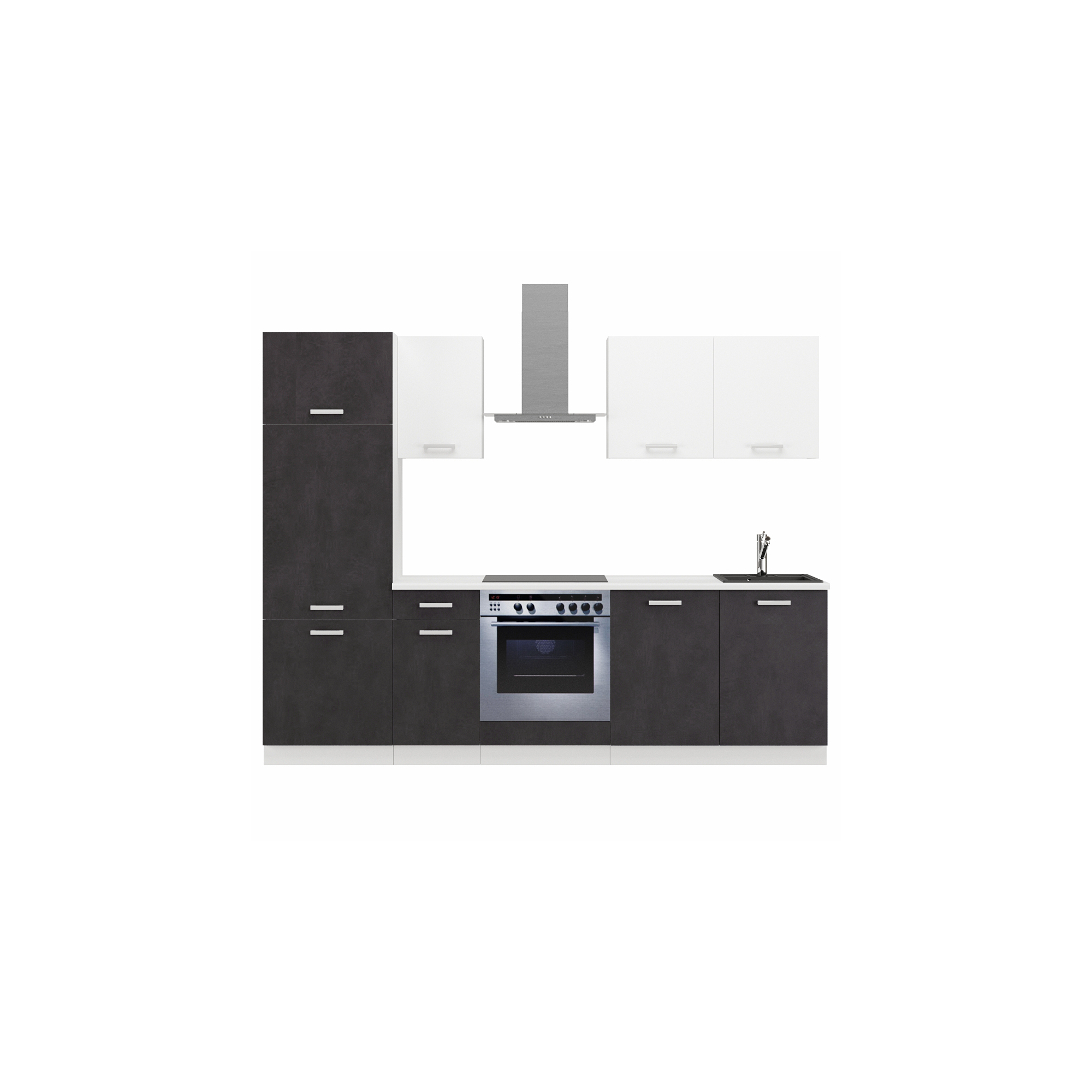 Nowoczesny design zestawu mebli kuchennych 270 cm doskonale współgra z różnymi stylami aranżacyjnymi, dzięki czemu łatwo dopasować go do indywidualnych preferencji. Szafki, półki i blat o ergonomicznych wysokościach ułatwiają codzienną pracę w kuchni, tworząc przyjemne i funkcjonalne środowisko gotowania.