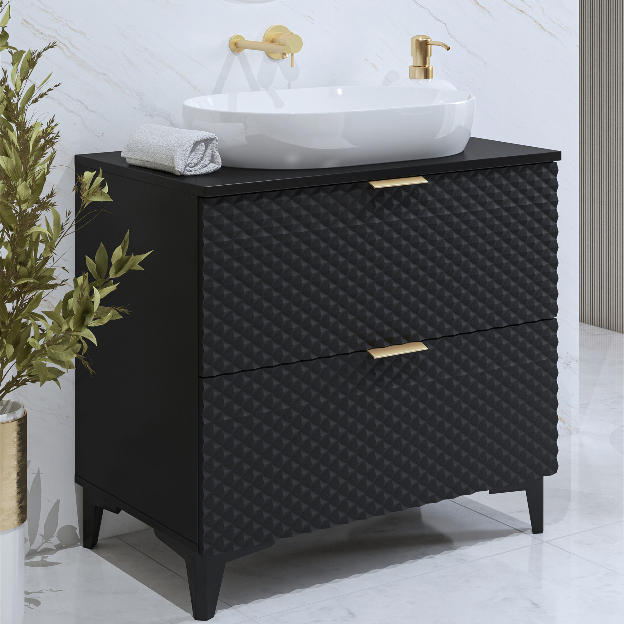 Szafka łazienkowa wisząca pod umywalkę 60 cm Czarny Onyks Typ-47 LAURA Podstawowe