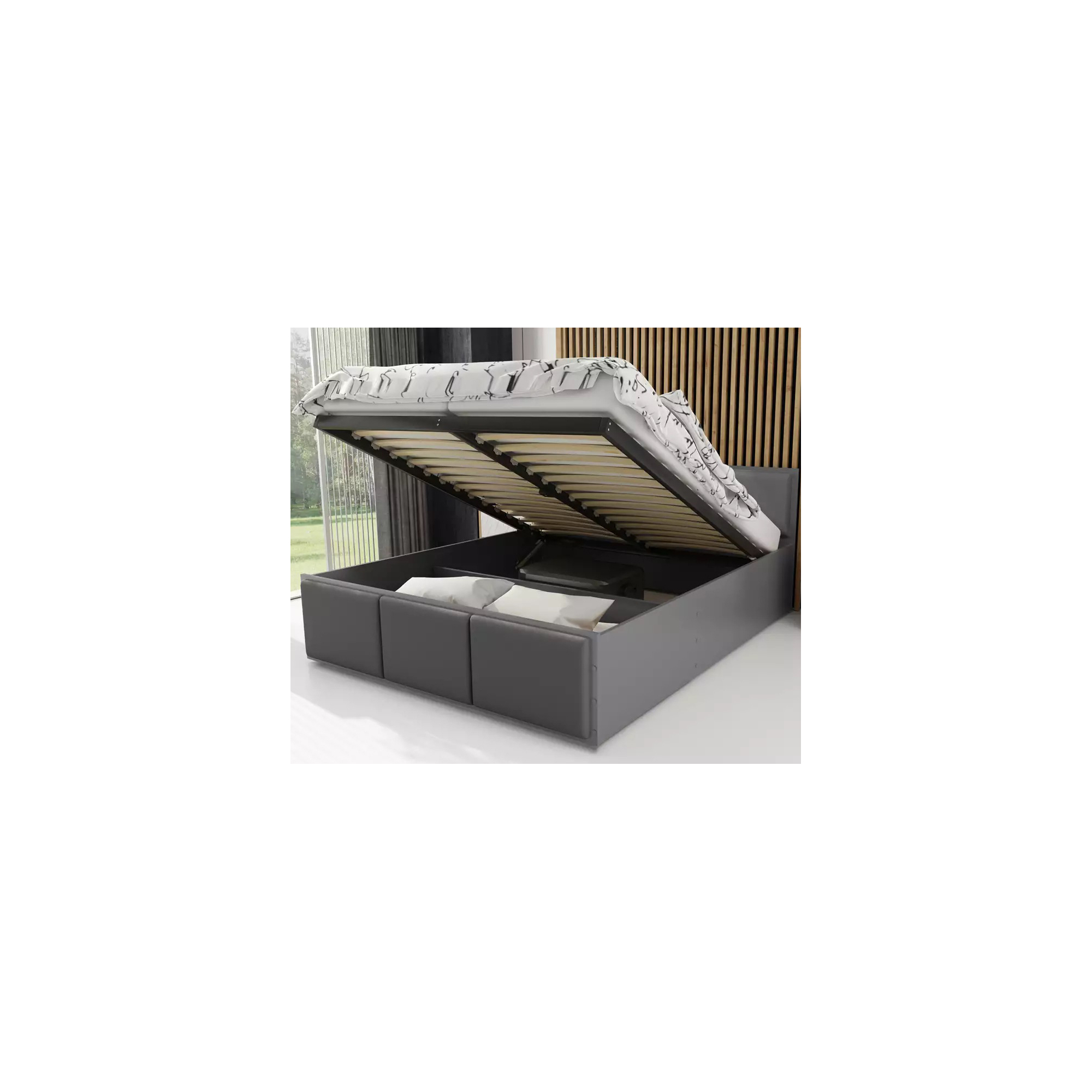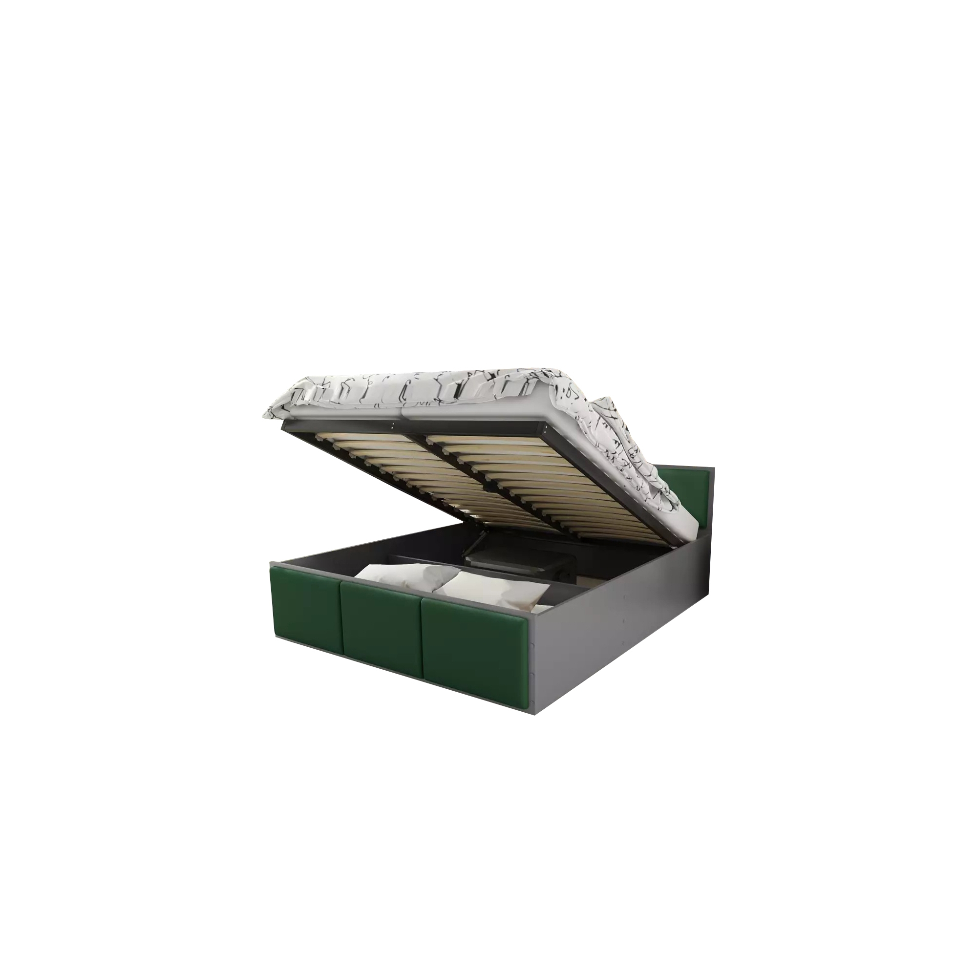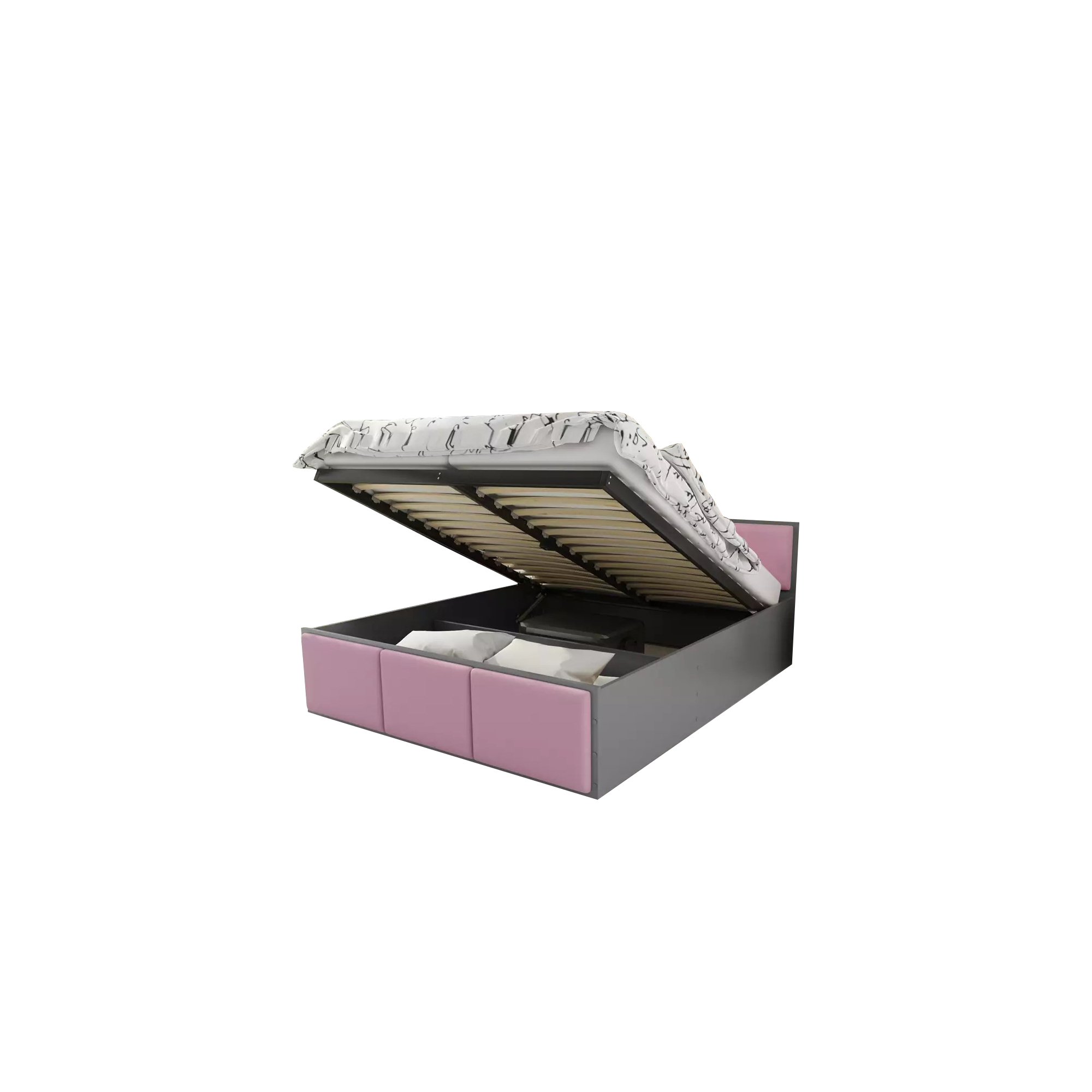 Łóżko PANAMA TAPICEROWANA z pojemnikiem i stelażem metalowym bez materaca Grafit Podstawowe (1)