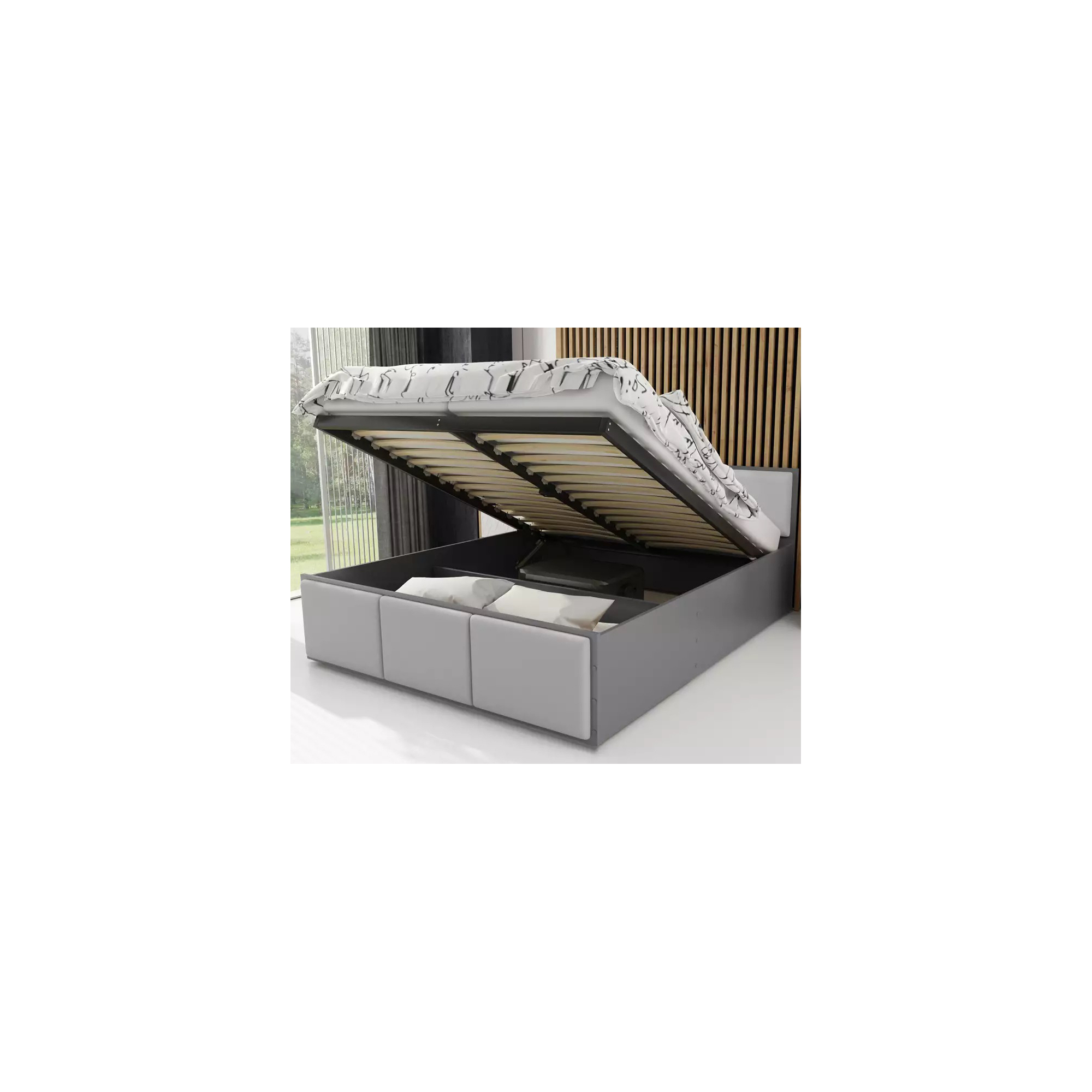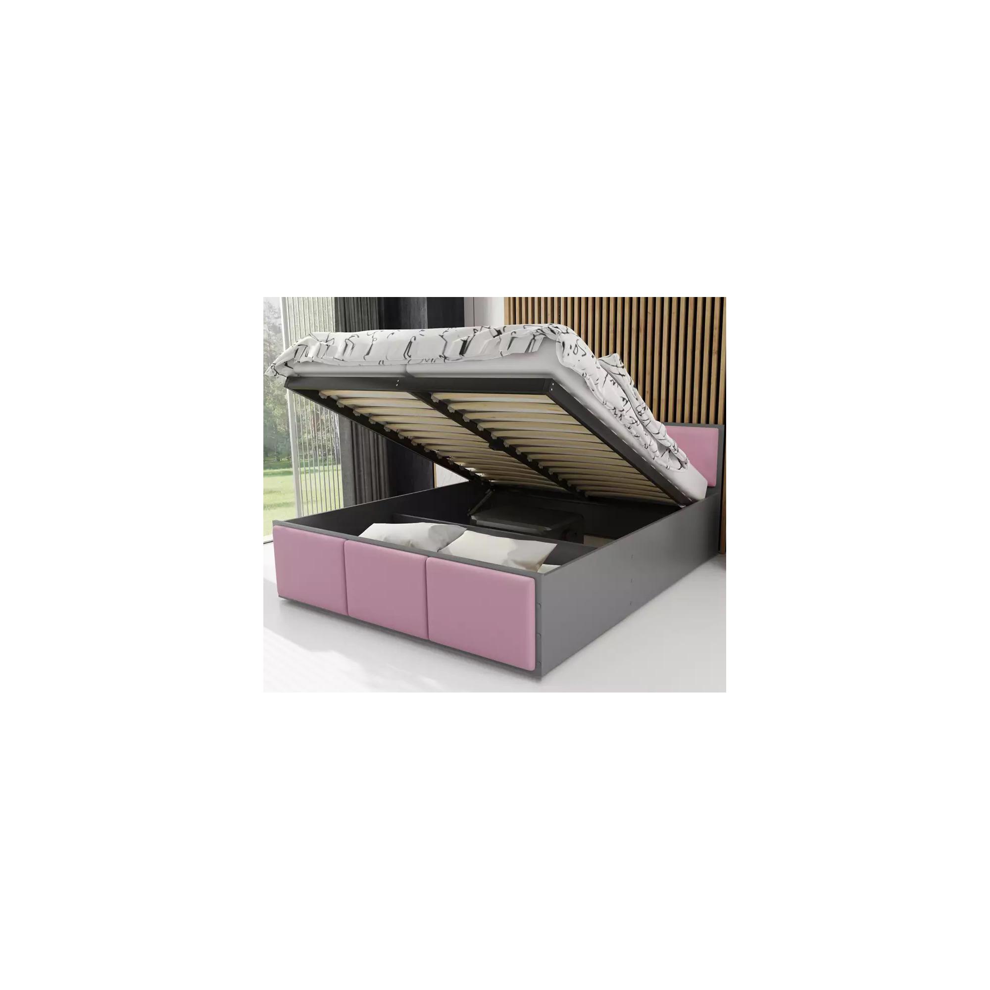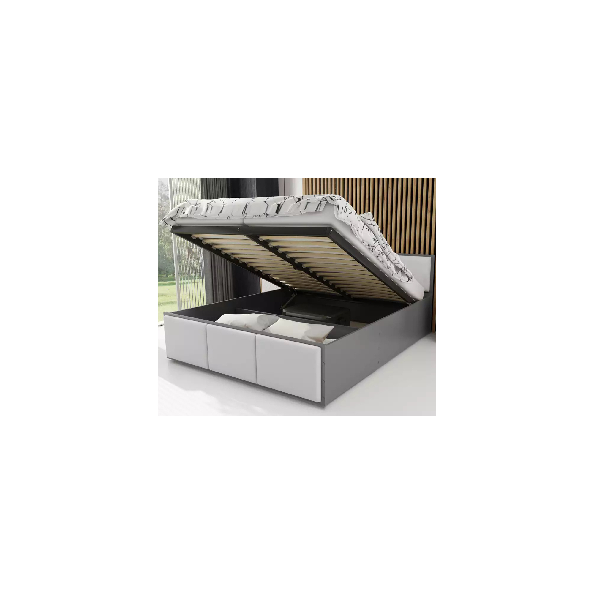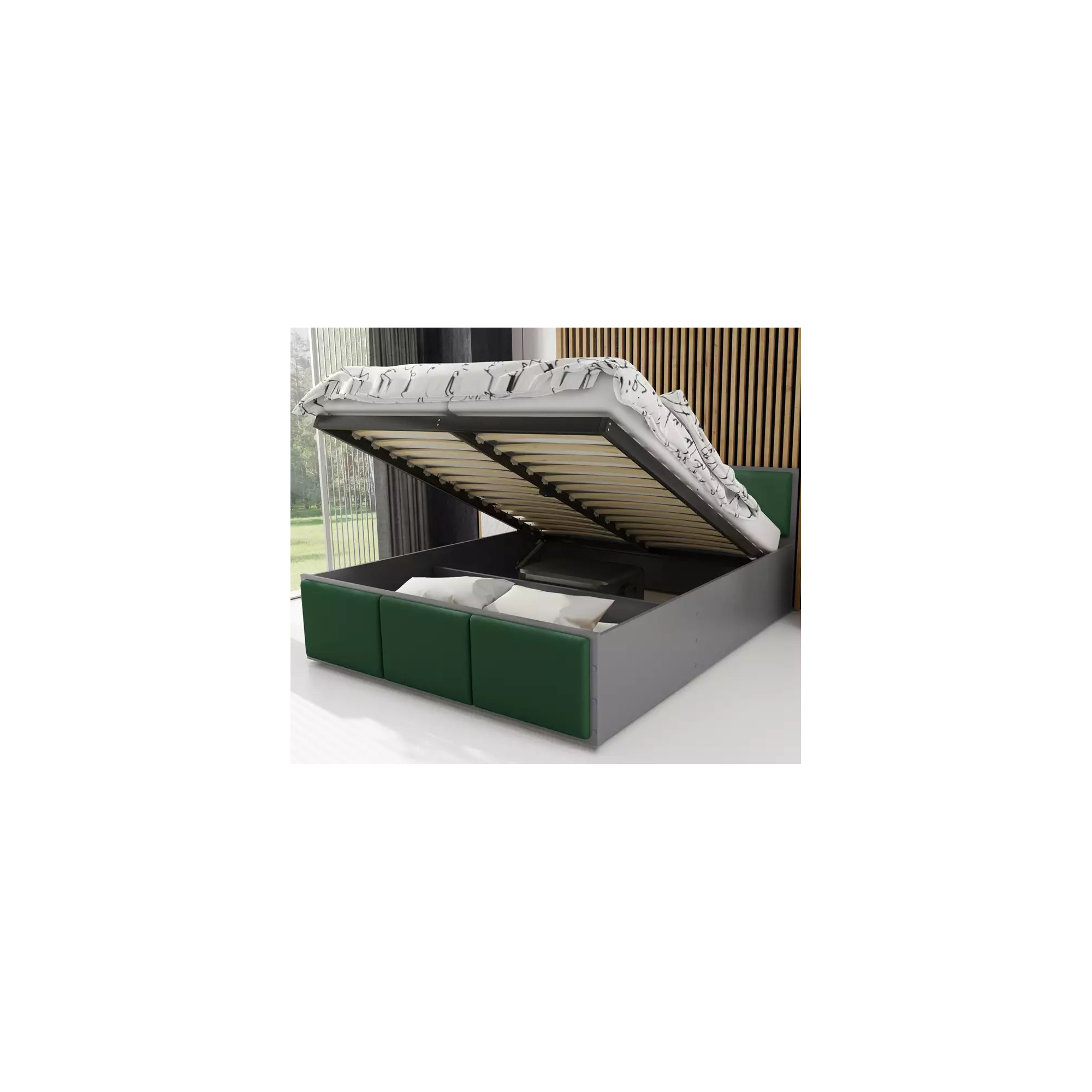 • Kolor: Łóżko PANAMA TAPICEROWANA z pojemnikiem i stelażem metalowym bez materaca Grafit Podstawowe (3)