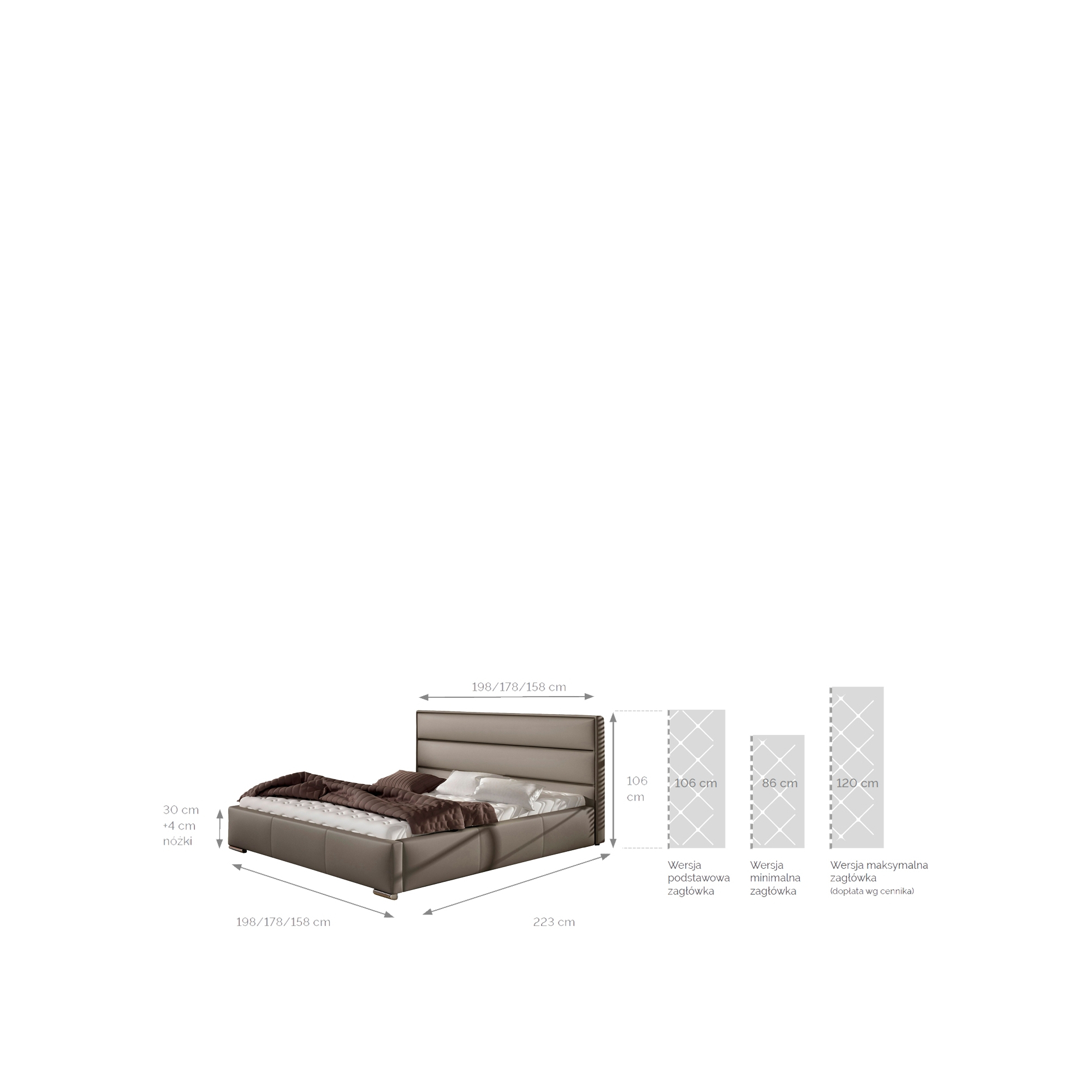 UWAGA! Do łóżek w wersji Slim nie można dobrać nóżek o wysokości 10 cm oraz opcji zaokrąglenia boków!