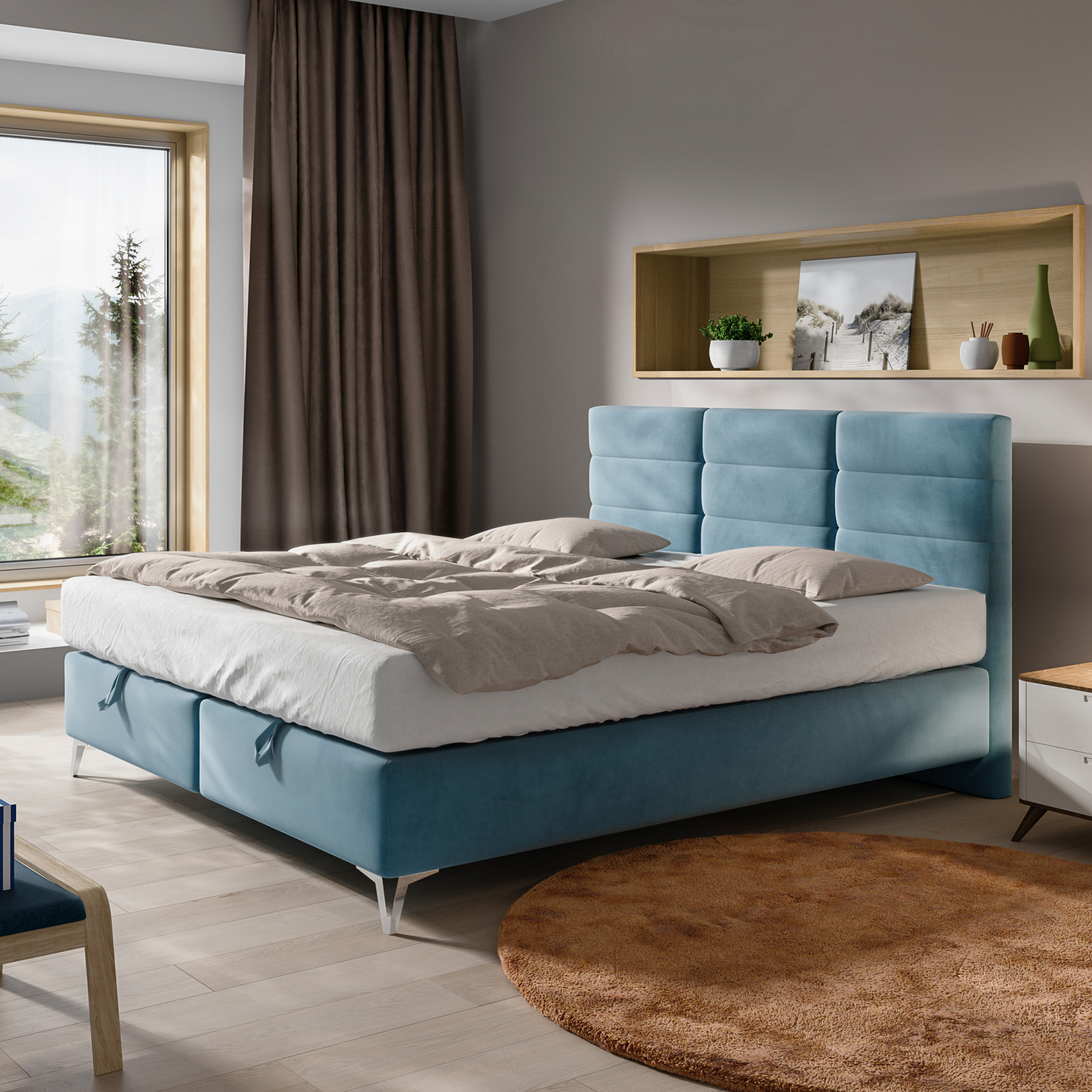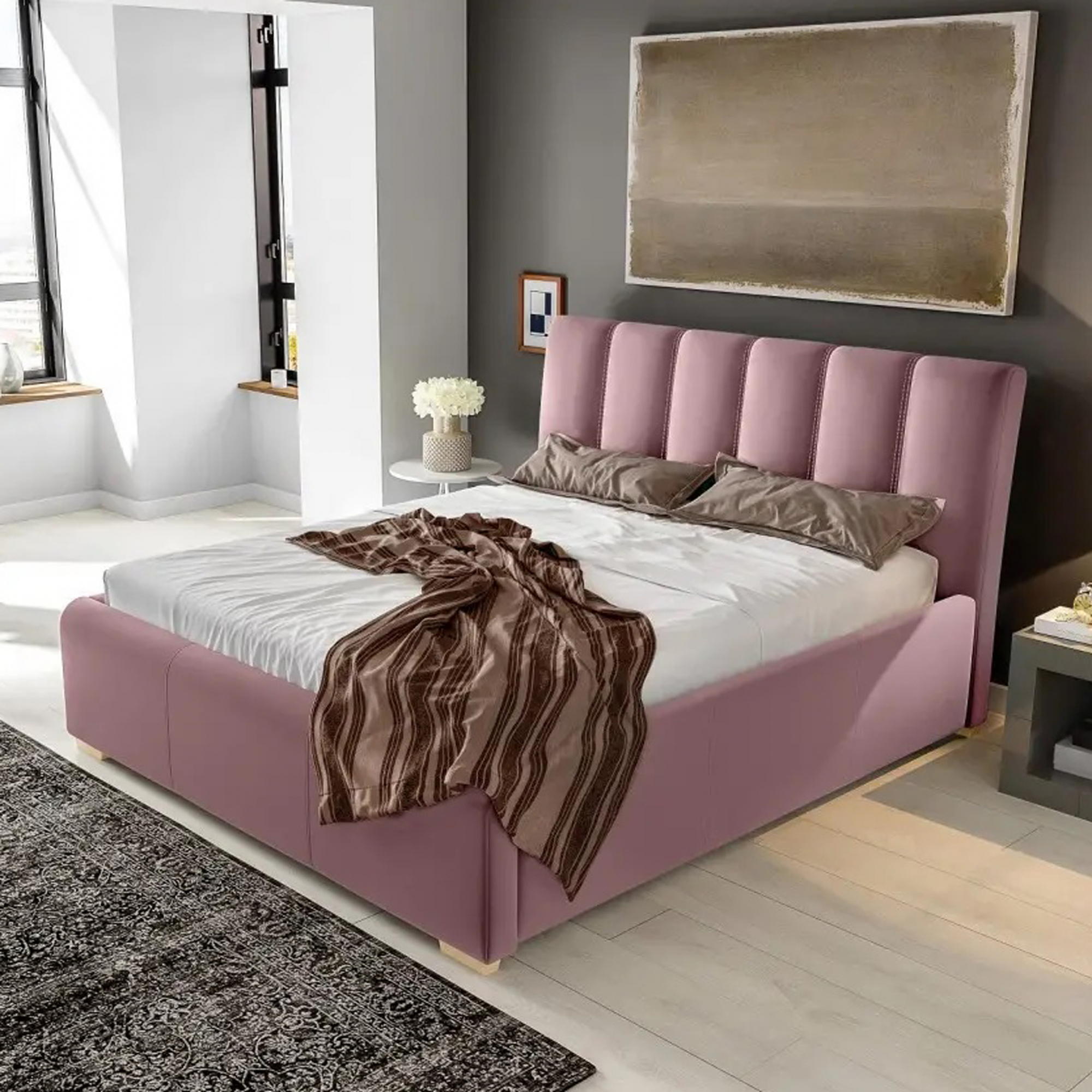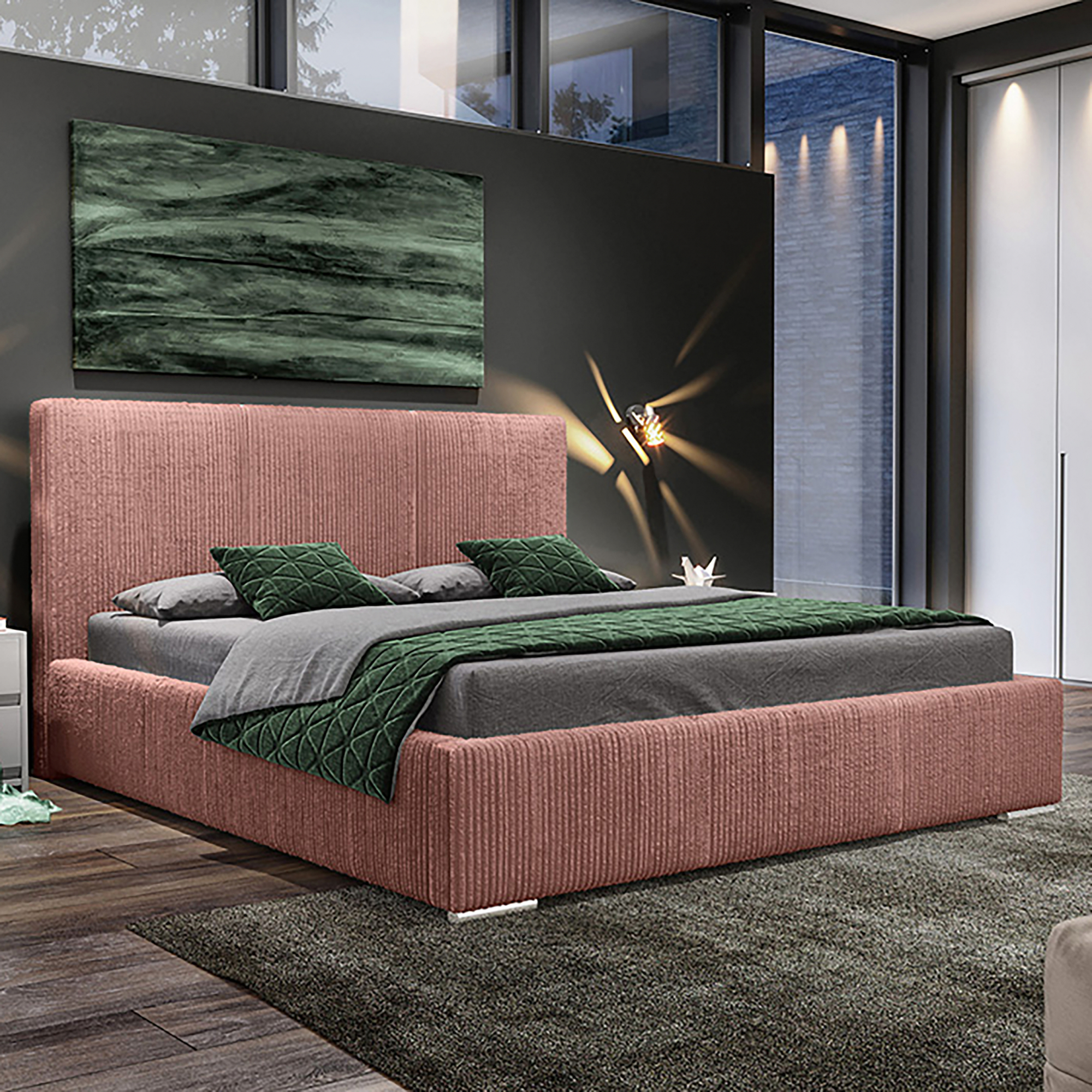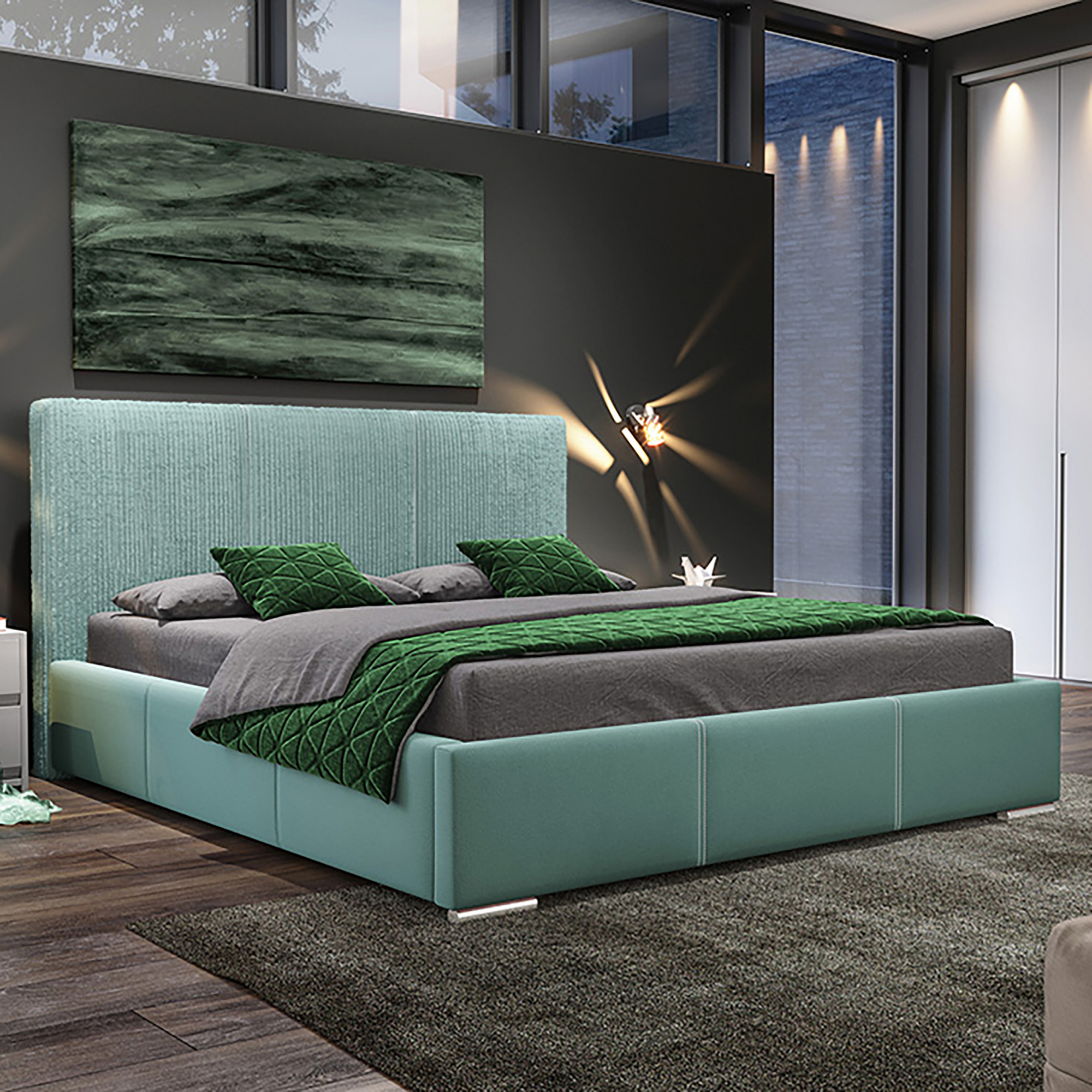 Łóżko zostało wykonane z wysokiej jakości materiałów. Wyróżnia je estetyka i elegancki wygląd, oraz dopracowane detale - głębokie przeszycia oraz symetryczne i regularne pikowanie sprawiają, że zagłówek tego modelu wydaje się być złożony z równo ułożonych kostek scalonych w prostą mozaikę. Ten prosty design ma w sobie nutę klasycznego charakteru i wprowadza do wnętrza spokojną, relaksującą atmosferę.
