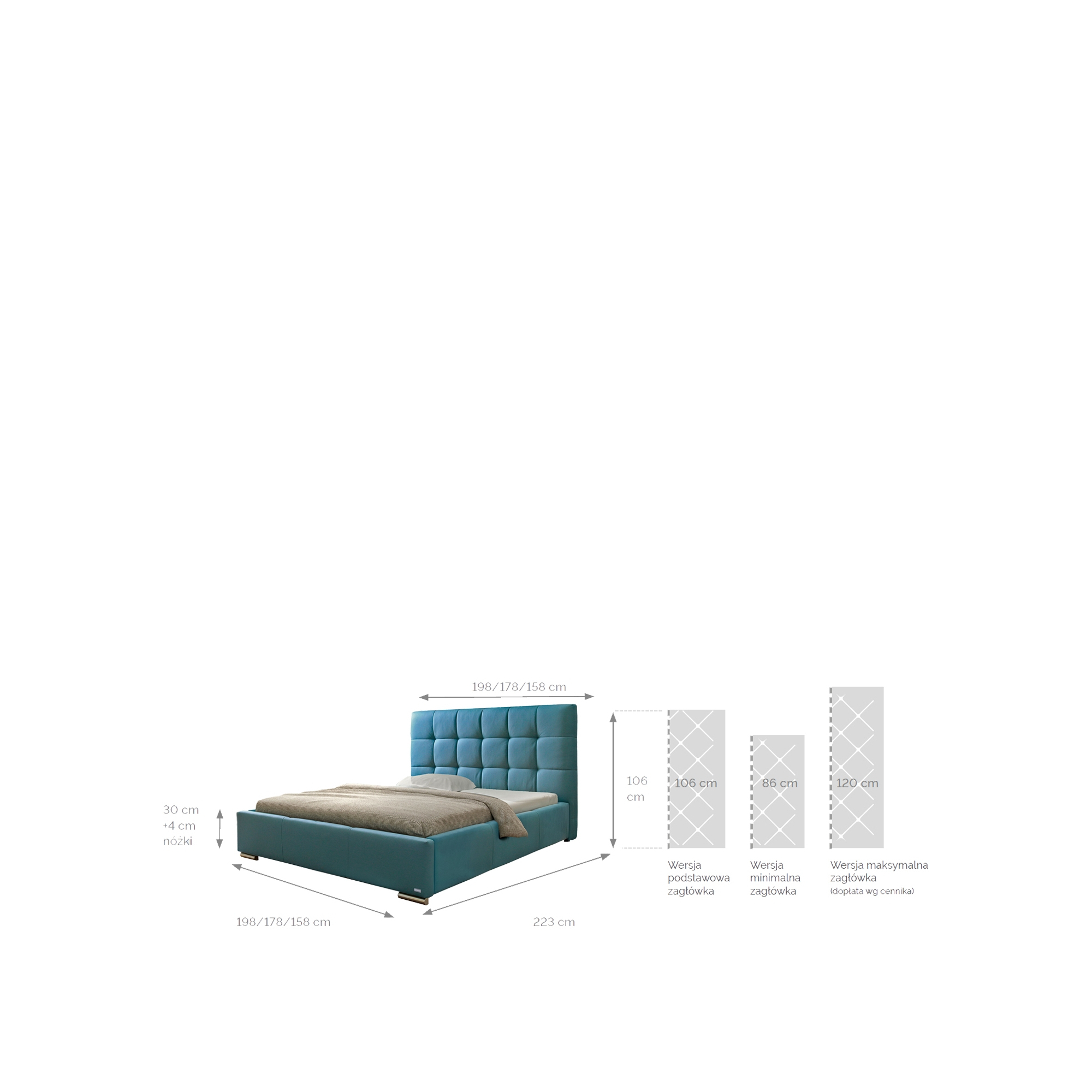 UWAGA! Do łóżek w wersji Slim nie można dobrać nóżek o wysokości 10 cm oraz opcji zaokrąglenia boków!