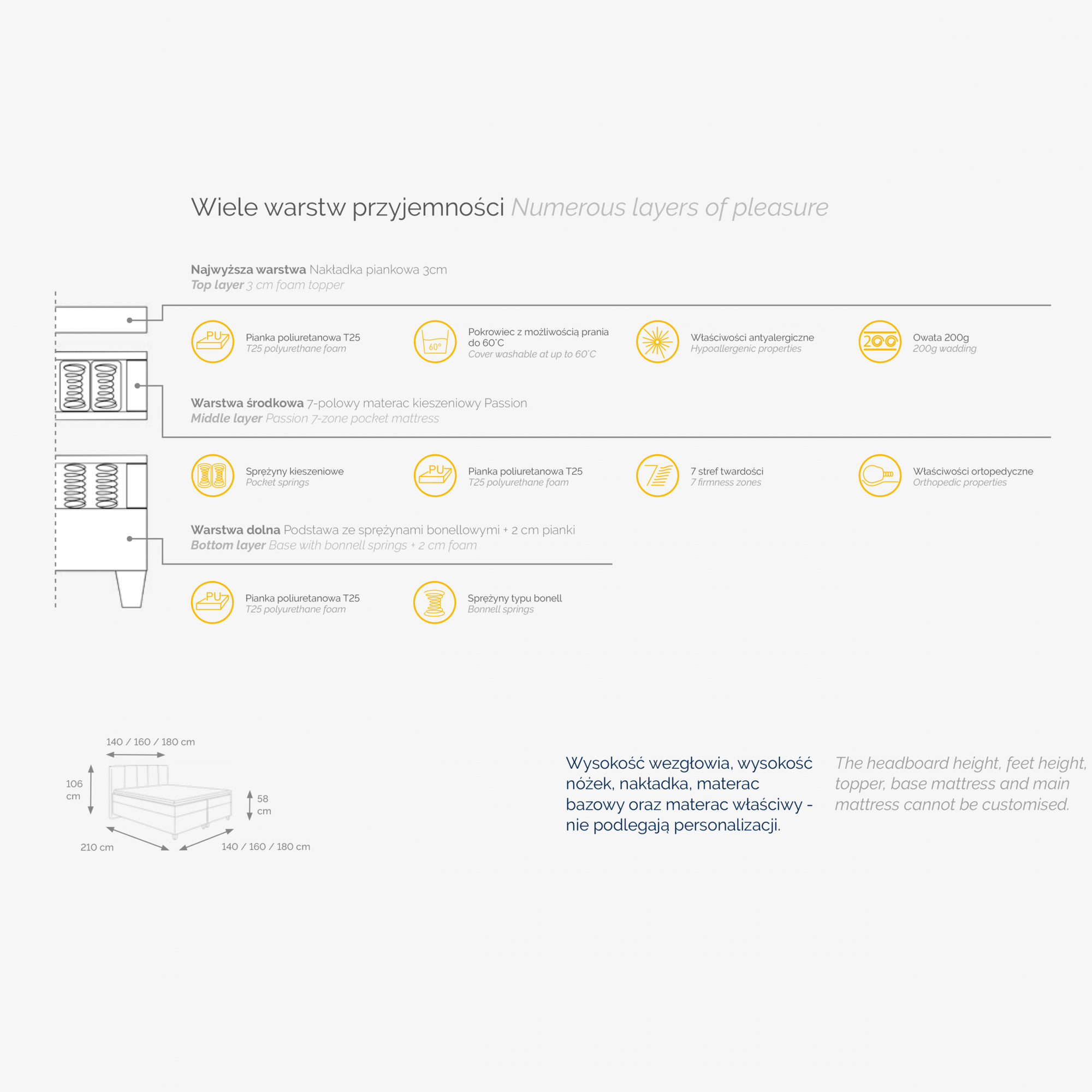Łóżko kontynentalne ARIZONA 160 x 200 Podstawowe