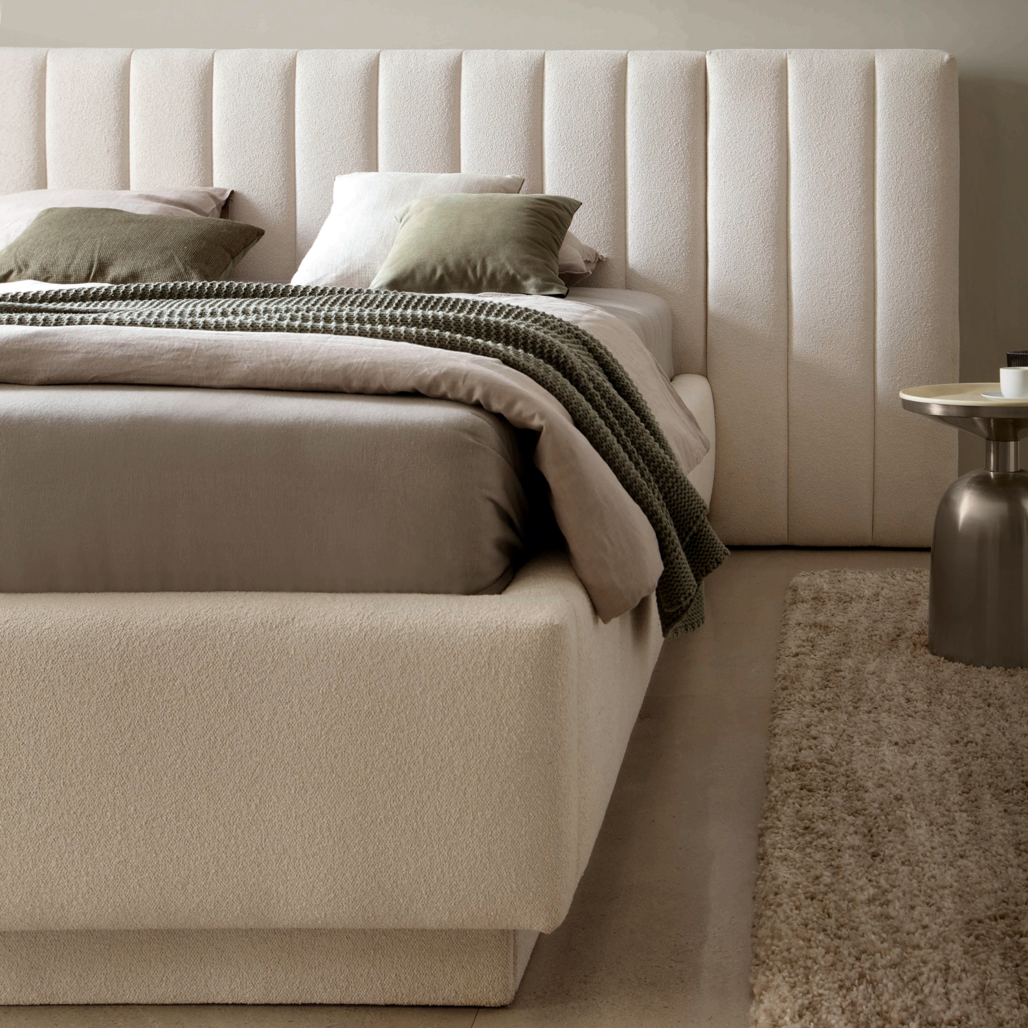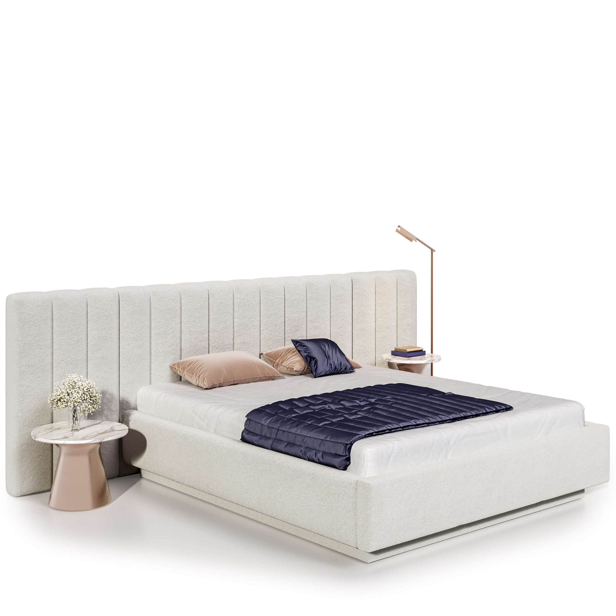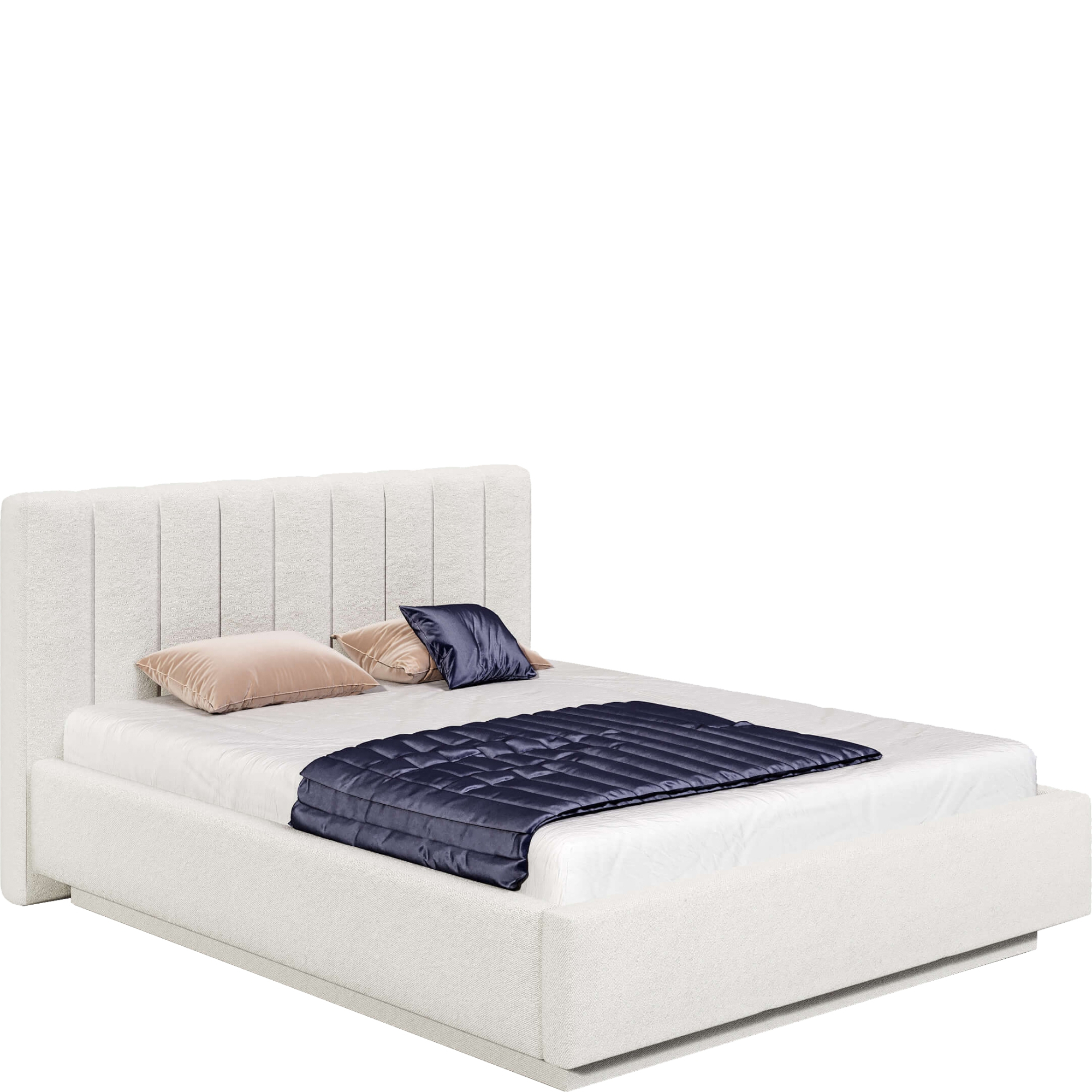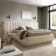 Elementem modelu Cortez, który przyciąga uwagę, jest jego zagłówek. Ozdobiony został głębokimi, pionowymi przeszyciami, które wizualnie dodają sypialni wysokości. Zagłówek w podstawowej wersji ma taką samą szerokość jak podstawa łóżka, co oznacza, że jego krawędzie licują się z bokami.