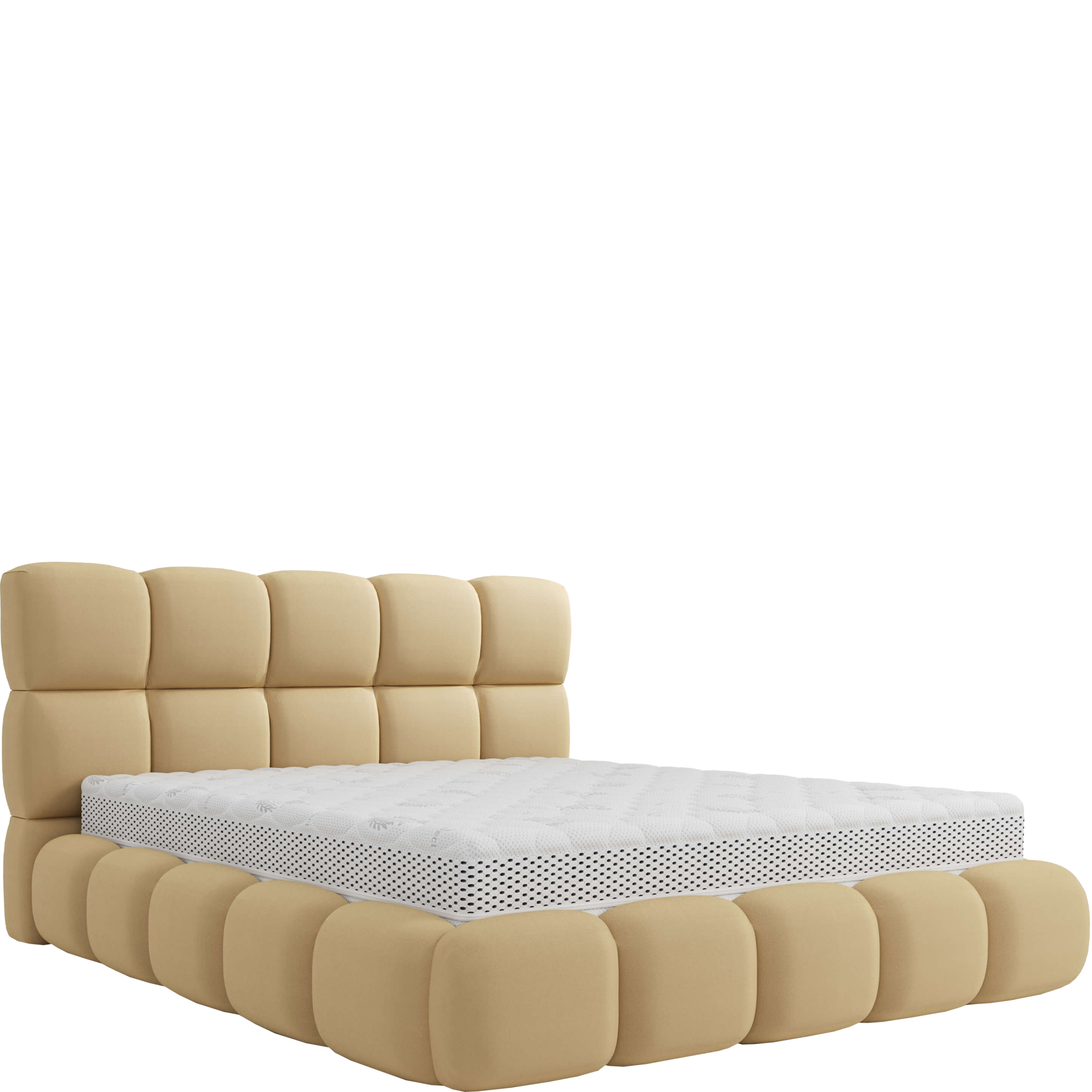 konfigurowalny Łóżko tapicerowane Cherry to wyjątkowa propozycja do Twojej sypialni. Wyróżnia się głębokimi wciągami na ramie oraz zagłówku, które nadają mu wyjątkowy charakter i sprawiają, że wygląda niezwykle miękko i puszyście. Starannie wykonane detale dodają łóżku subtelności i delikatności.