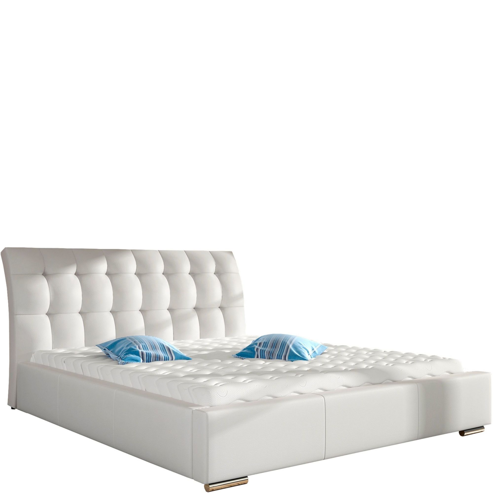 Łóżko zostało wykonane z wysokiej jakości materiałów. Wyróżnia je estetyka i elegancki wygląd oraz wezgłowie złożone jakby z równo ułożonych, puszystych poduszeczek. Delikatne wygięcie go w tył dodatkowo potęguje wrażenie miękkości.