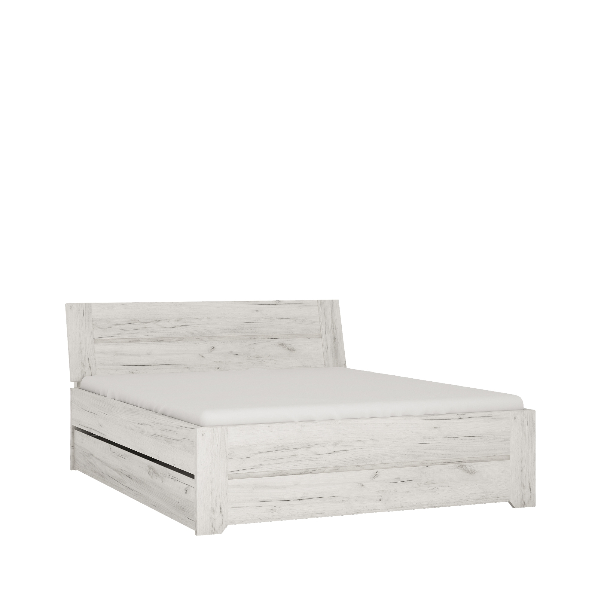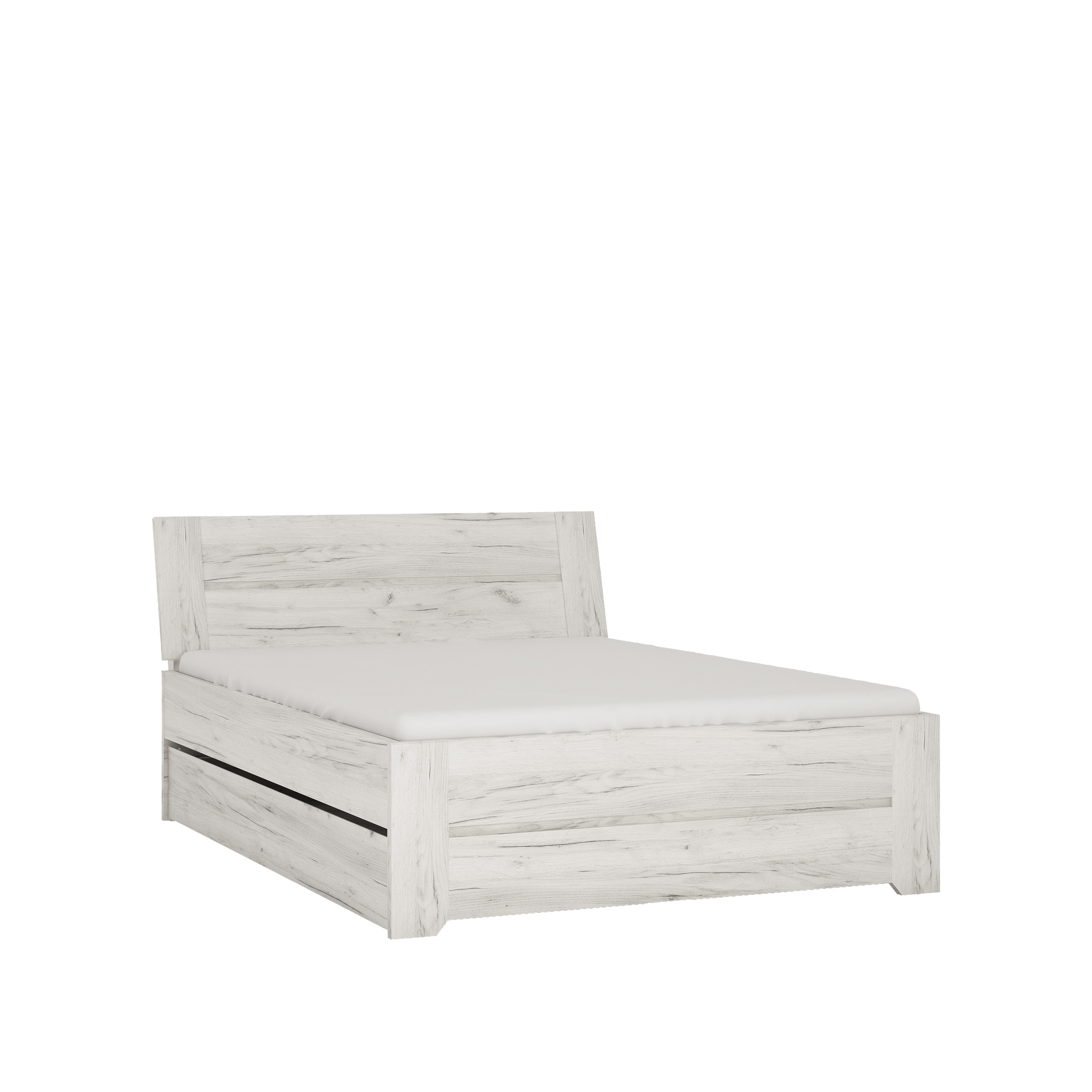 konfigurowalny Łóżko z dziecięco–młodzieżowej kolekcji Angel to wygodne, modne i proste rozwiązanie stylistyczne, które przypadnie do gustu tak wymagającej klienteli jaką są dzieci i nastolatkowie. Użycie najwyższej jakości materiału jaką jest laminowana płyta odporna na uszkodzenia, wilgoć i wysoką temperaturę oraz komponentów, a także staranne wykonanie to gwarancja bezpieczeństwa dla dziecka i trwałości mebla. Spokojny i subtelny dekor Dąb White Craft wzbogacony ciemniejszymi rysami to iście skandynawska stylistyka zapewniająca oryginalność aranżacji i dobre samopoczucie dziecka. Tak naturalność imitująca naturalne bielone drewno znacznie wpłynie na poprawę komfortu odpoczynku i snu. Wyposażenie łóżka w duży wysuwany materac to także atut przemawiający za jego wyborem, dzięki któremu dziecko będzie mogło przenocować znajomego. Brak uchwytu przy szufladzie to nie tylko przejaw nowoczesności ale i łatwość utrzymania mebla w czystości nawet przez najmłodsze dzieci. Możliwość dokupienia montowanego na wezgłowiu oświetlenia typu Butterfly pozwoli na wieczorne czytanie książek, a rodzicom bajek na dobranoc.