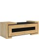 konfigurowalny Aby wystrój Twojego salonu był kompletny wyposaż go w niewielkie meble do przechowywania, jak niska szafka 2-drzwiowa. Może być miejscem na ustawienie dekoracji, jak i pomóc w zagospodarowaniu przestrzeni telewizyjnej. Korpus mebla został wykonany w okleinie naturalnej, natomiast front odznacza się urokiem szlachetnego litego drewna dębowego. Drewniane powierzchnie w połączeniu z aplikacją i blatem z czarnego szkła Lacobel dają bardzo atrakcyjny efekt. Szafka posiada dwoje drzwiczek z mechanizmem otwierania dotykowego.