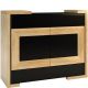 konfigurowalny Obok witrynek i regałów w salonie ważną funkcję pełnią zamknięte meble do przechowywania. Szafka z barkiem z kolekcji Corino daje dużo różnego rodzaju miejsca do zagospodarowania. Korpus wykonany w okleinie naturalnej z czarnym, szklanym blatem połączono z frontem z drewna dębowego i czarnego szkła Lacobel. W środkowej części mebla umieszczono podwójne drzwiczki – za każdymi znajdziesz jedną półkę, natomiast u góry i na dole po jednej szufladzie. Wygodny mechanizm otwierania dotykowego push to open, oraz zamykanie na zatrzask gwarantują komfortowe i bezpieczne użytkowanie.