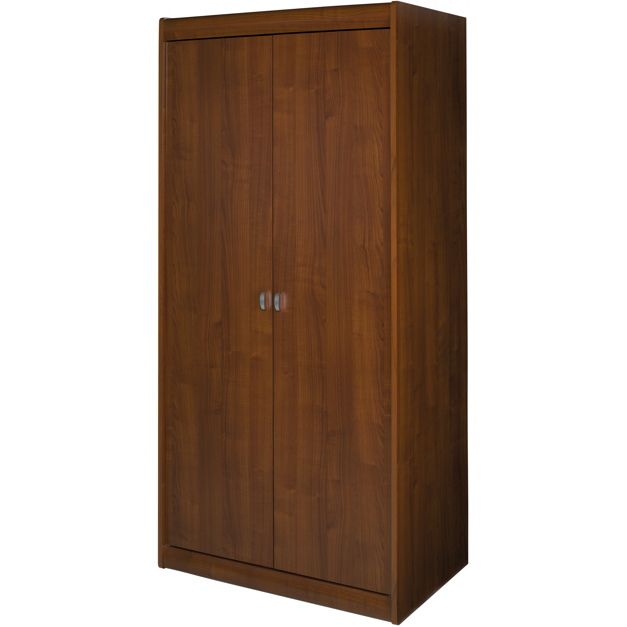 Dwudrzwiowa, pojemna szafa przyda się wszędzie tam, gdzie potrzebujesz dużo miejsca do przechowywania. Korpus i front szafy Dover wykonano z płyty meblowej pokrytej folią drewnopodobną w stylowym wybarwieniu wiśnia primavera. Górna, zaoblona krawędź nadaje prostej bryle charakteru, a niewielkie srebrne uchwyty są doskonałym uzupełnieniem całości. Wewnątrz szafy znajdziesz stałą półkę konstrukcyjną oraz drążek.