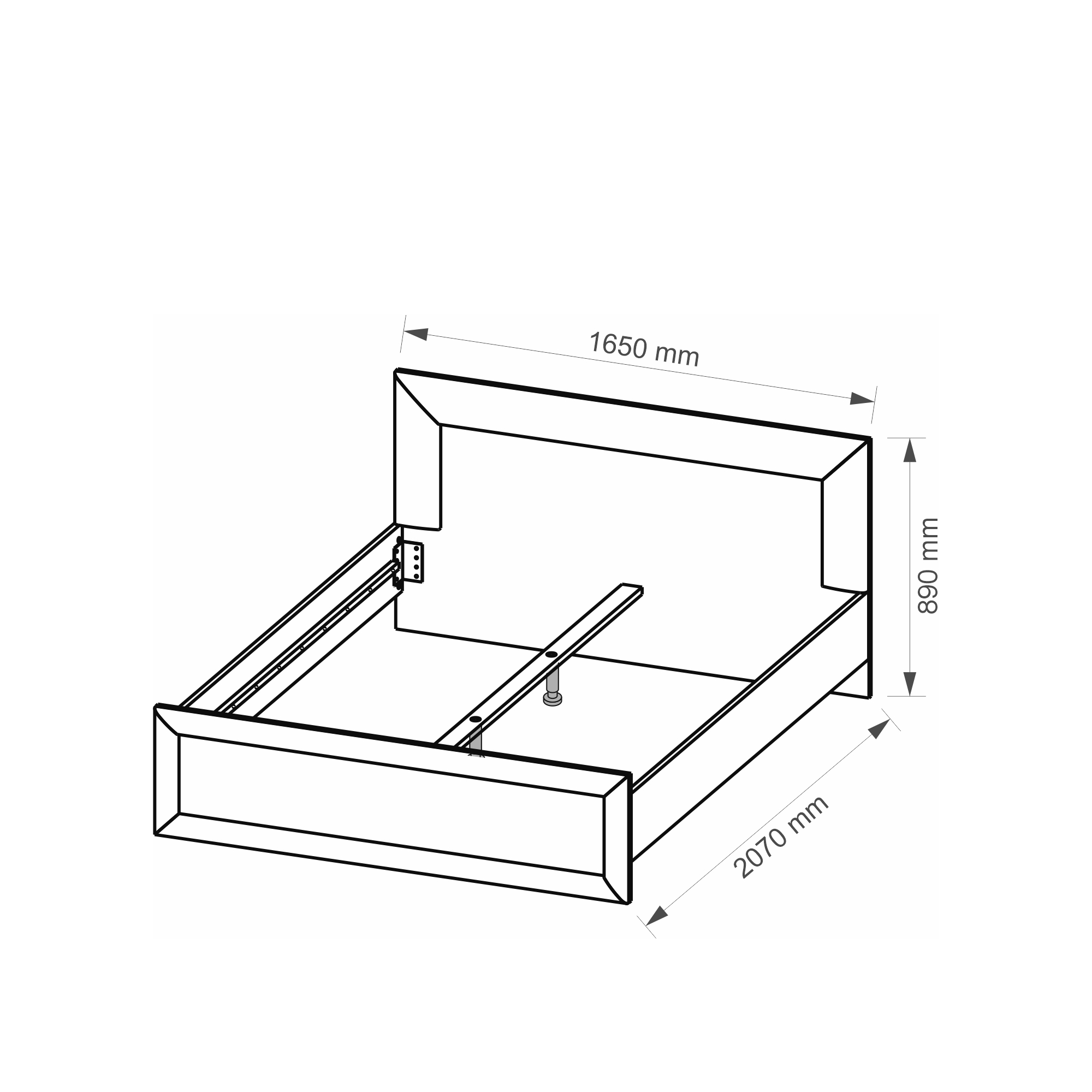 Łóżko bez stelaża i materaca.