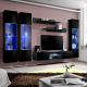 Meblościanka z oświetleniem P3 Czarny / Czarny Połysk